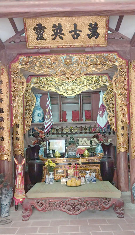 + Tòa hậu cung: 1 gian, 2 chái kích thước dài 9,0m, rộng 7,7m, kiểu nhà hai mái, tường hồi bít đốc. Gian trong cùng tạo thượng cung - khám thờ bài trí long ngai, bài vị của tứ vị đại vương cùng các đồ thờ tự: Ống hương, ống hoa, nến phao, đài nước... Bộ vì hậu cung kết cấu theo lối “Thượng giá chiêng - hạ bảy”.