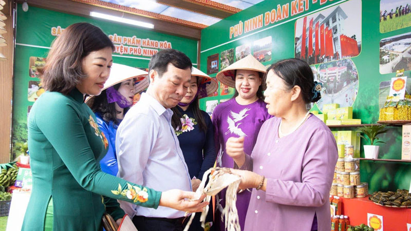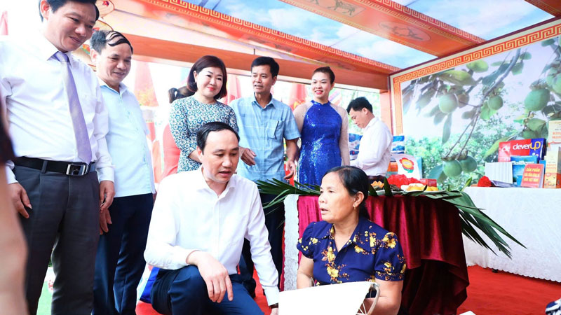 Đ/c Phùng Khánh Tài - Phó Bí thư Thường trực Tỉnh ủy và các đồng chí lãnh đạo tỉnh, huyện đến thăm gian trưng bày tại Hội trại văn hoá huyện Phù ninh dịp Giỗ tổ Hùng Vương - Lễ hội Đền Hùng năm 2024