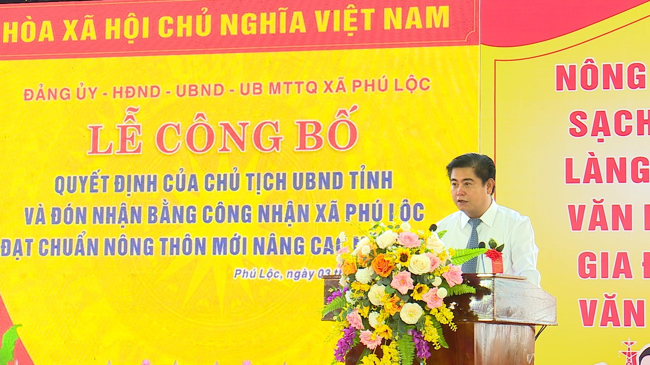 Phát biểu tại buổi Lễ, đồng chí Nguyễn Hữu Nhật, Phó Bí thư Huyện ủy, Chủ tịch UBND huyện đã ghi nhận và biểu dương kết quả mà Đảng bộ, chính quyền và Nhân dân xã Phú Lộc đạt được trong quá trình xây dựng xã NTM nâng cao. Đồng thời đồng chí đề nghị Đảng ủy, chính quyền xã cần tiếp tục nâng cao chất lượng các tiêu chí NTM; phát huy tiềm năng, thế mạnh của địa phương, thực hiện hiệu quả khâu đột phá về phát triển tiểu thủ công nghiệp, thương mại dịch vụ. Tập trung phát triển sản xuất nông nghiệp theo hướng sản xuất hàng hóa tập trung, mở rộng chuỗi liên kết sản xuất. Chú trọng công tác quản lý đất đai, tài nguyên, khoáng sản, bảo vệ môi trường gắn với việc ngăn chặn, xử lý nghiêm các trường hợp vi phạm trong lĩnh vực tài nguyên môi trường. Làm tốt công tác bồi thường, giải phóng mặt bằng các dự án trọng điểm trên địa bàn. Tiếp tục duy trì và phát huy các hoạt động văn hoá, thể dục, thể thao, tạo khí thế phấn khởi, hăng say lao động cho người dân trên địa bàn. Nâng cao chất lượng, hiệu quả công tác giáo dục và đào tạo. Đẩy mạnh các hoạt động chuyển đổi số, xây dựng chính quyền điện tử hướng tới chính quyền số. Không ngừng giữ vững an ninh chính trị, trật tự an toàn xã hội trên địa bàn. Đặc biệt là tập trung lãnh, chỉ đạo làm tốt công tác chuẩn bị tổ chức thành công Đại hội Đảng bộ xã Phú Lộc lần thứ 32. Phấn đấu xây dựng xã Phú Lộc trở thành xã NTM kiểu mẫu và hướng tới đô thị loại 5…
