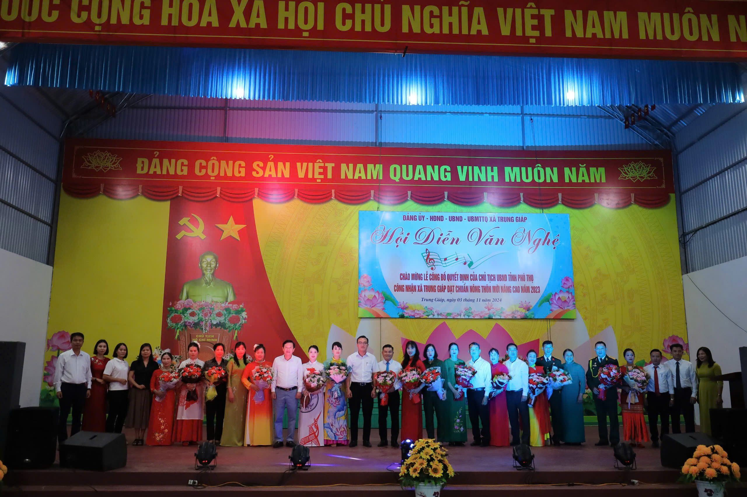 (Phù Ninh)- Tối ngày 03/11/2024, Đảng ủy- HĐND-UBND- UB MTTQ xã Trung Giáp tổ chức Hội diễn văn nghệ năm 2024 chào mừng xã đạt chuẩn NTM nâng cao năm 2023. Tới dự có đồng chí Trịnh Đức Lai – Uỷ viên BTV Huyện ủy, PCT UBND huyện; lãnh đạo Trung tâm VHTTDL và TT huyện, lãnh đạo Phòng Văn hóa- TT huyện; lãnh đạo cấp ủy, chính quyền xã; các đồng chí trong BCH Đảng bộ xã, trưởng các tổ chức chính trị- xã hội, BGH các trường mầm non, Tiểu học, THCS, Bí thư chi bộ, trưởng khu dân cư, trưởng Ban công tác mặt trận, đông đảo bà con nhân dân trong và ngoài xã đến xem và cổ vũ cho các đội văn nghệ.