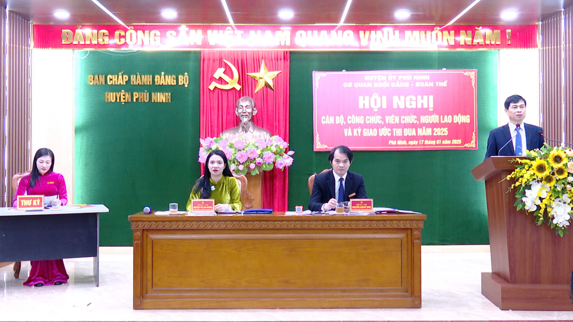 (Phù Ninh)- Ngày 17/1/2025, Cơ quan khối Đảng – Đoàn thể huyện Phù Ninh tổ chức hội nghị cán bộ, công chức, viên chúc, người lao động và ký giao ước thi đua năm 2025. Dự hội nghị có đồng chí Nguyễn Thị Tố Uyên – Tỉnh ủy viên, Bí thư Huyện ủy, Chủ tịch HĐND huyện; đồng chí Nguyễn Quang Vinh – Phó Bí thư thường trực Huyện ủy; các đồng chí lãnh đạo các Ban Xây dựng Đảng, Văn phòng Huyện ủy, Trung tâm Chính trị huyện, MTTQ và các tổ chức chính trị - xã hội, tập thể cán bộ, công chức, viên chức, người lao động cơ quan khối Đảng – Đoàn thể huyện Phù Ninh.