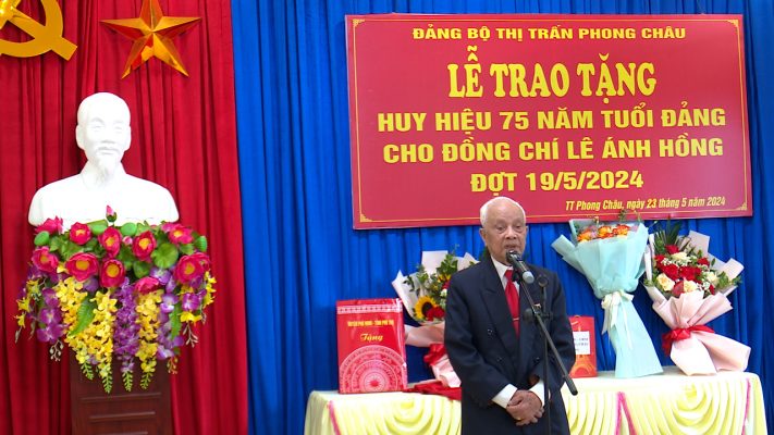 Trong đợt 19/5/2024, huyện Phù Ninh có 03 đồng chí đảng viên được nhận Huy hiệu 70 và 75 năm tuổi Đảng. Đó là đảng viên Lê Ánh Hồng, sinh năm 1930, sinh hoạt tại Chi bộ Mã Thượng A, Đảng bộ thị trấn Phong Châu vinh dự được nhận Huy hiệu 75 năm tuổi Đảng; đảng viên Ngô Ngọc Liễn, sinh năm 1919, sinh hoạt tại Chi bộ 9, Đảng bộ xã An Đạo vinh dự được nhận Huy hiệu 70 năm tuổi Đảng và đảng viên Hoàng Thị Hội, sinh năm 1935, sinh hoạt tại Chi bộ Tranh Trong, Đảng bộ xã Bình Phú vinh dự được nhận nhận Huy hiệu 70 năm tuổi Đảng.