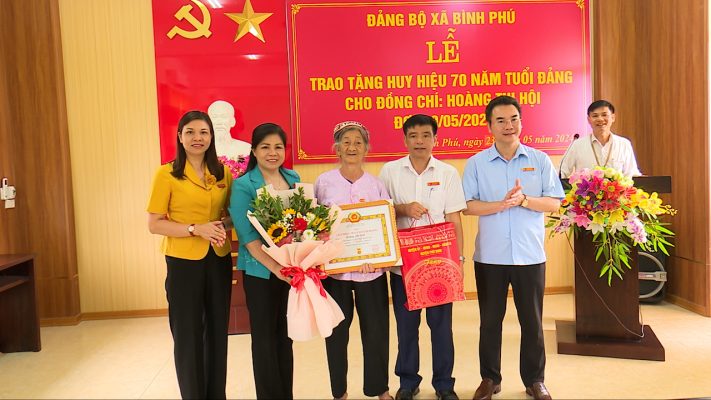 Được sự ủy quyền của Ban thường vụ Tỉnh ủy Phú Thọ, đồng chí Nguyễn Thị Tố Uyên – Tỉnh ủy viên, Bí thư Huyện ủy, Chủ tịch HĐND huyện, cùng các đồng chí lãnh đạo huyện Phù Ninh đã tặng hoa chúc mừng và trao tặng Huy hiệu 70, 75 năm tuổi đảng cho 03 đảng viên dược nhận Huy hiệu đảng.