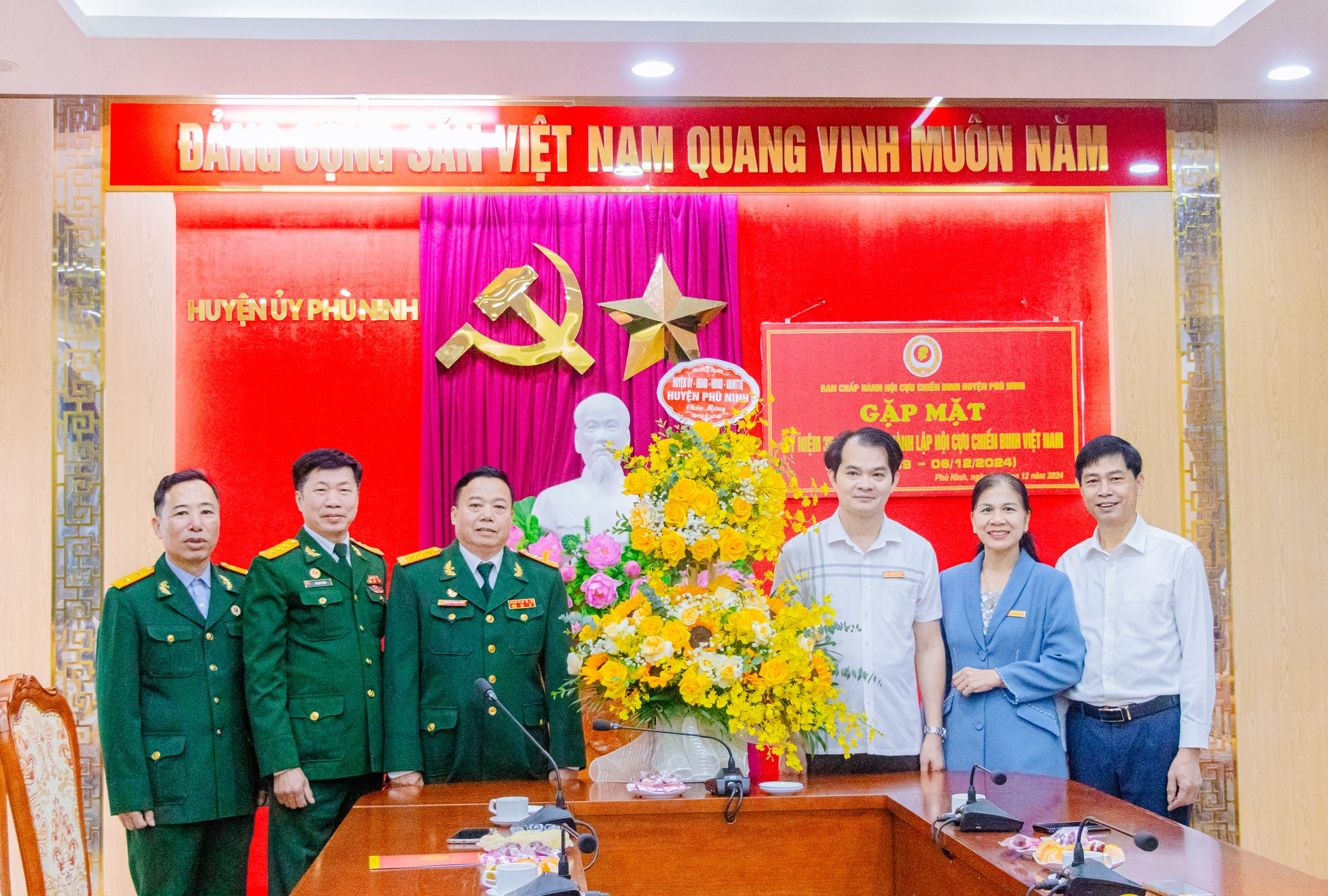 (Phù Ninh)- Nhân kỷ niệm 35 năm Ngày thành lập Hội Cựu chiến binh Việt Nam (06/12/1989 - 06/12/2024), sáng ngày 6/12, đồng chí Nguyễn Quang Vinh - Phó Bí thư Thường trực Huyện ủy; đồng chí Hán Trung Kết - Ủy viên Ban Thường vụ Huyện ủy, Chủ tịch Ủy ban MTTQ Việt Nam huyện cùng lãnh đạo, cán bộ các Ban xây dựng Đảng, tổ chức chính trị huyện đã đến thăm, tặng hoa chúc mừng Hội Cựu chiến binh huyện.