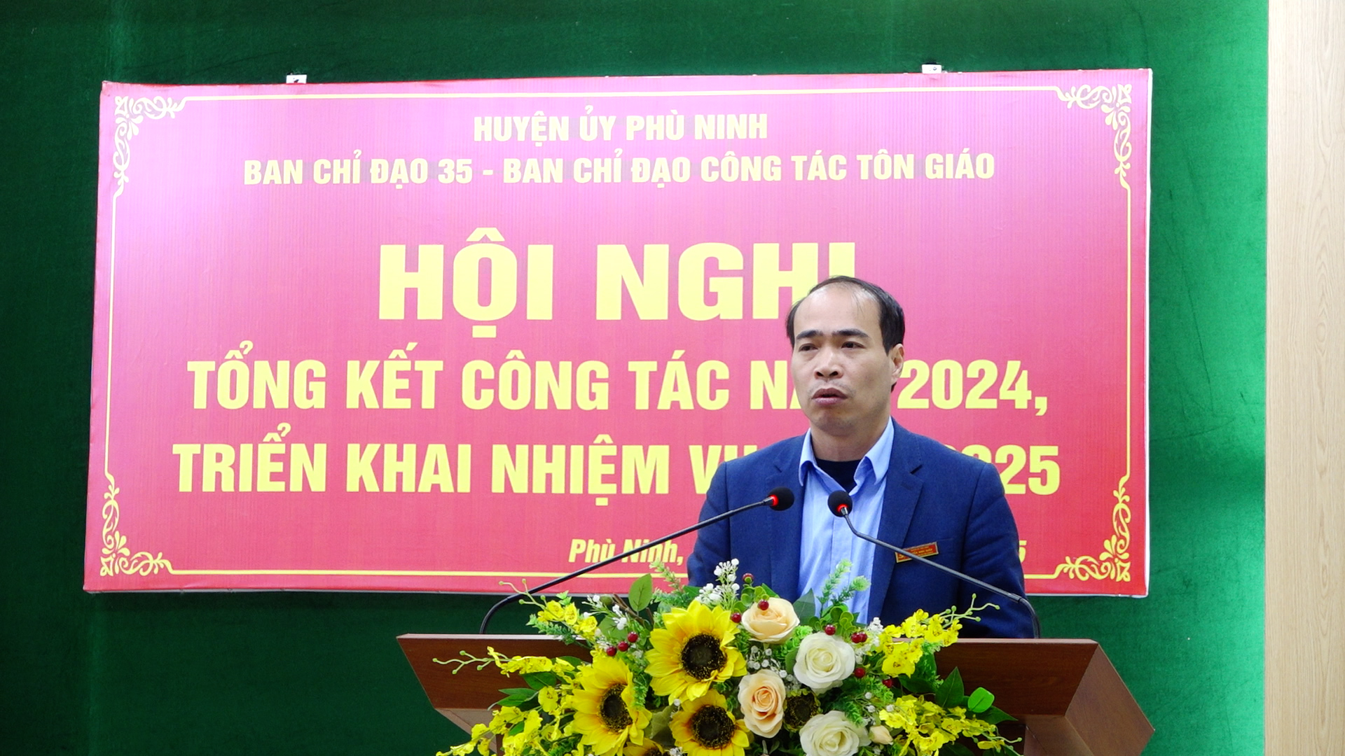 (Phù Ninh)- Chiều ngày 10/1/2025, Ban chỉ đạo (BCĐ) 35 – BCĐ công tác tôn giáo tổ chức hội nghị tổng kết công tác năm 2024, triển khai nhiệm vụ năm 2025. Dự hội nghị có đồng chí Nguyễn Quang Vinh – Phó Bí thư Thường trực Huyện uỷ, đồng chí Nguyễn Thị Kim Thanh – Uỷ viên BTV Huyện uỷ - Trưởng Ban Tuyên giáo Huyện uỷ, Giám đốc Trung tâm Chính trị huyện, đồng chí Nguyễn Minh Quân – Uỷ viên BTV Huyện uỷ, Trưởng Ban Dân vận Huyện uỷ, đồng chí Nguyễn Ngọc Bích – Uỷ viên BTV Huyện uỷ, Trưởng Ban Tổ chức Huyện uỷ, đồng chí Hán Trung Kết - Uỷ viên BTV Huyện uỷ, Chủ tịch UBMTTQ huyện, các đồng chí thành viên BCĐ 35 huyện; các đồng chí đại diện lãnh đạo các xã, thị trấn.