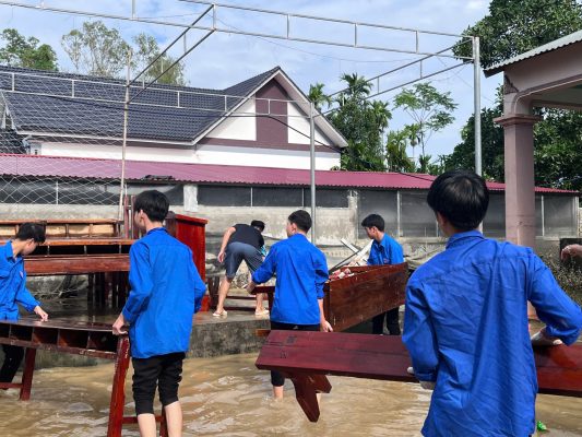 Ngay sau đợt mưa bão, với phương châm “Nước rút đến đâu, dọn sạch đến đó”, Ban Thường vụ Huyện đoàn tiếp tục chỉ đạo tổ chức các đội hình thanh niên tình nguyện tại chỗ cùng với sự hỗ trợ của các cơ sở Đoàn, Đội trên địa bàn tập trung ra quân làm vệ sinh môi trường, thu gom rác thải, khơi thông dòng chảy, kênh mương, đường giao thông, dọn dẹp, sửa chữa, dựng lại cơ sở vật chất,… giúp người dân sớm ổn định cuộc sống. Đã có 300 lượt đoàn viên, thanh niên tham gia.