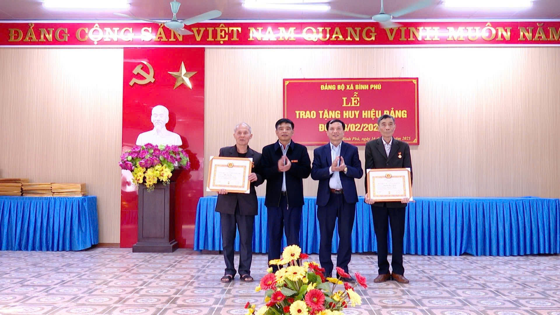 Đợt 03/2/2025 này, Đảng bộ xã Tiên Du có 10 đồng chí Đảng viên vinh dự được nhận huy hiệu từ 30 năm đến 65 năm tuổi Đảng, Trong đó có 01 đồng chí vinh dự nhận huy hiệu 65 năm tuổi đảng và 02 đồng chí nhận huy hiệu 60 năm tuổi Đảng. Đảng bộ xã An Đạo có 10 đồng chí vinh dự nhận huy hiệu từ 30 năm đến 60 năm tuổi Đảng, trong đó có 02 đồng chí vinh dự nhận huy hiệu 60 năm tuổi Đảng. Đảng bộ xã Bình Phú có 17 đồng chí vinh dự nhận huy hiệu từ 30 năm đến 60 năm tuổi Đảng, trong đó có 06 đồng chí vinh dự nhận huy hiệu 60 năm tuổi Đảng.