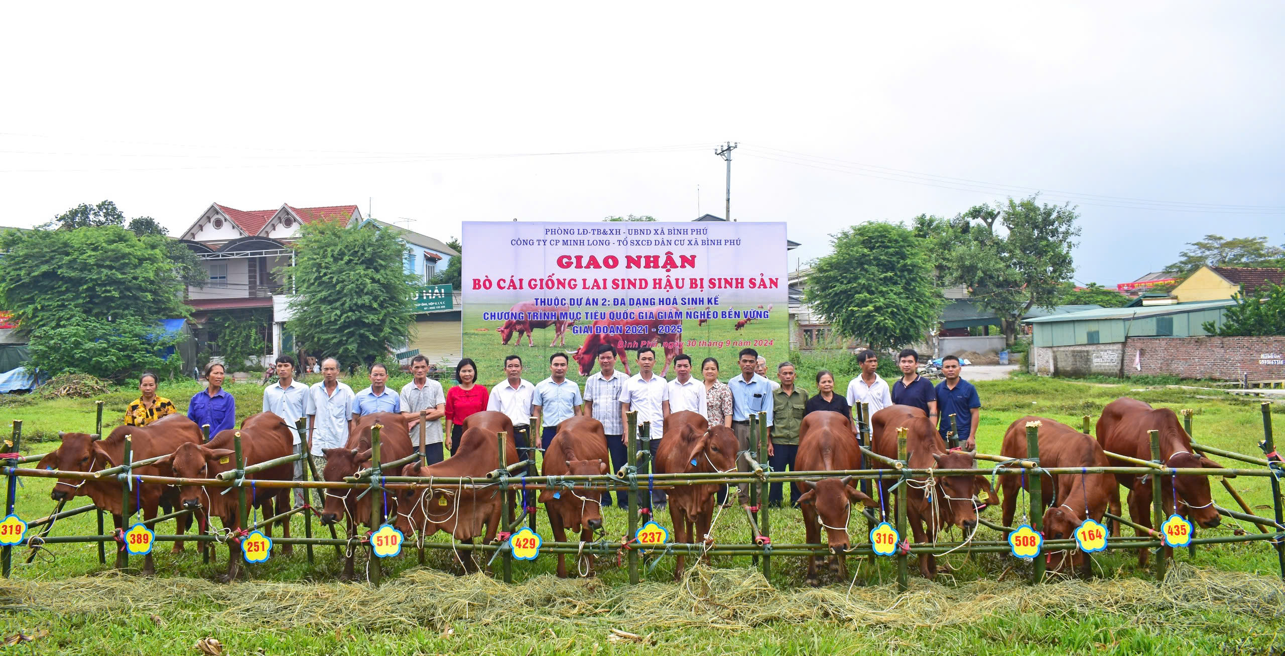 (Phù Ninh)- Ngày 30/9/2024, phòng LĐ-TB&XH huyện phối hợp với UBND xã Hạ Giáp, UBND xã Bình Phú và Công ty cổ phần thương mại du lịch và chuyển giao công nghệ nông lâm nghiệp Minh Long tổ chức giao nhận bò cái giống Lai sind hậu bị sinh sản thuộc Dự án 2 - Chương trình mục tiêu quốc gia giảm nghèo bền vững giai đoạn 2021-2025. Dự và trao bò đối với các tổ sản xuất cộng đồng dân cư có lãnh đạo phòng LĐ-TB&XH, lãnh đạo ĐU, HĐND, UBND, UB MTTQ, các tổ chức CT-XH xã, Bí thư Chi bộ, trưởng khu dân cư, thành viên tổ sản xuất cộng đồng dân cư của hai xã.