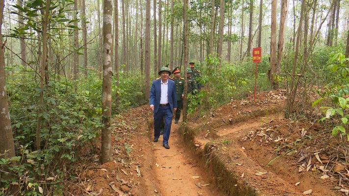 Thượng tá Nông Quốc Tuấn – Phó Tham mưu trưởng, Bộ CHQS tỉnh Phú Thọ và lãnh đạo huyện Phù Ninh kiểm tra công tác phòng chống lụt bão tại xã Bình Phú