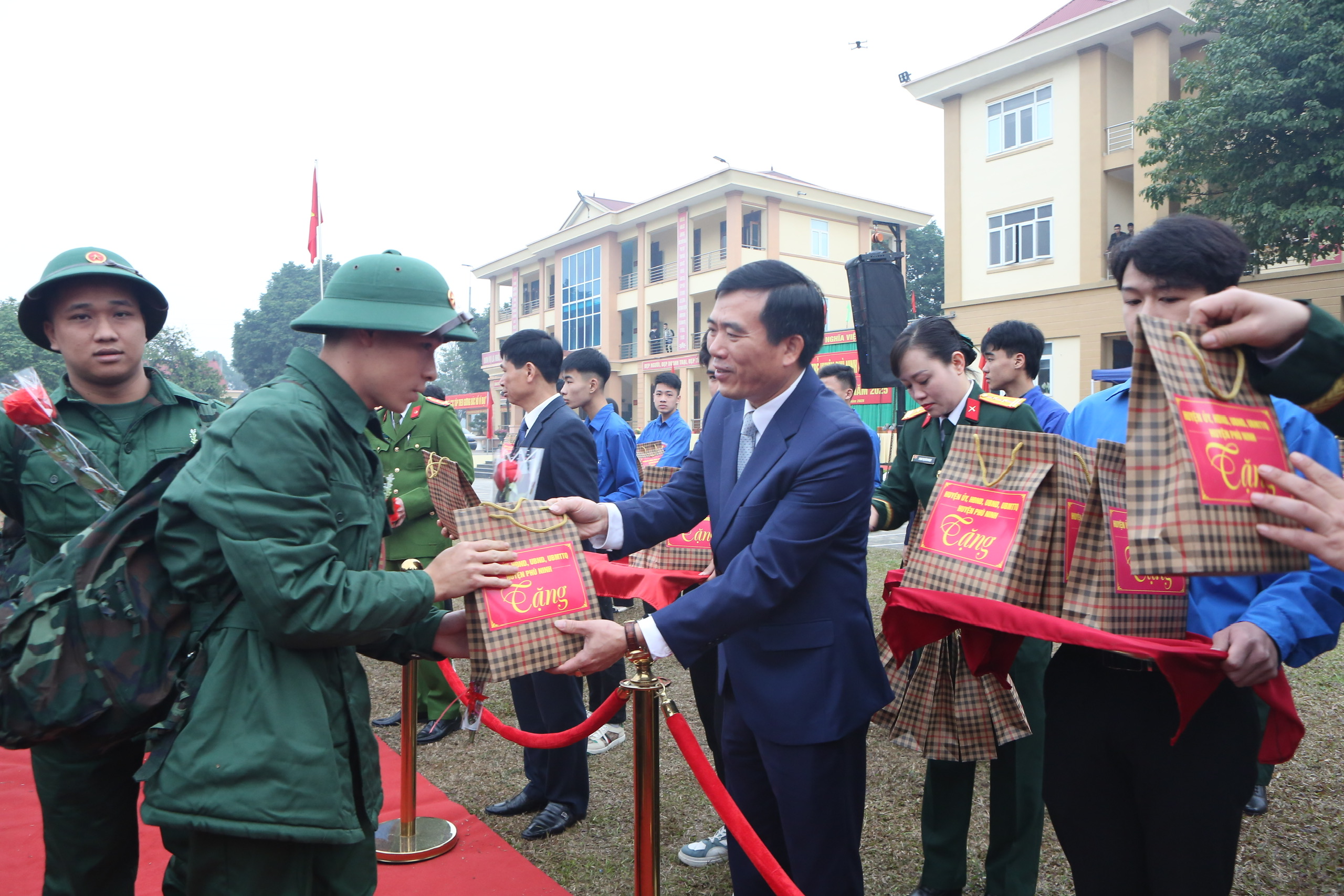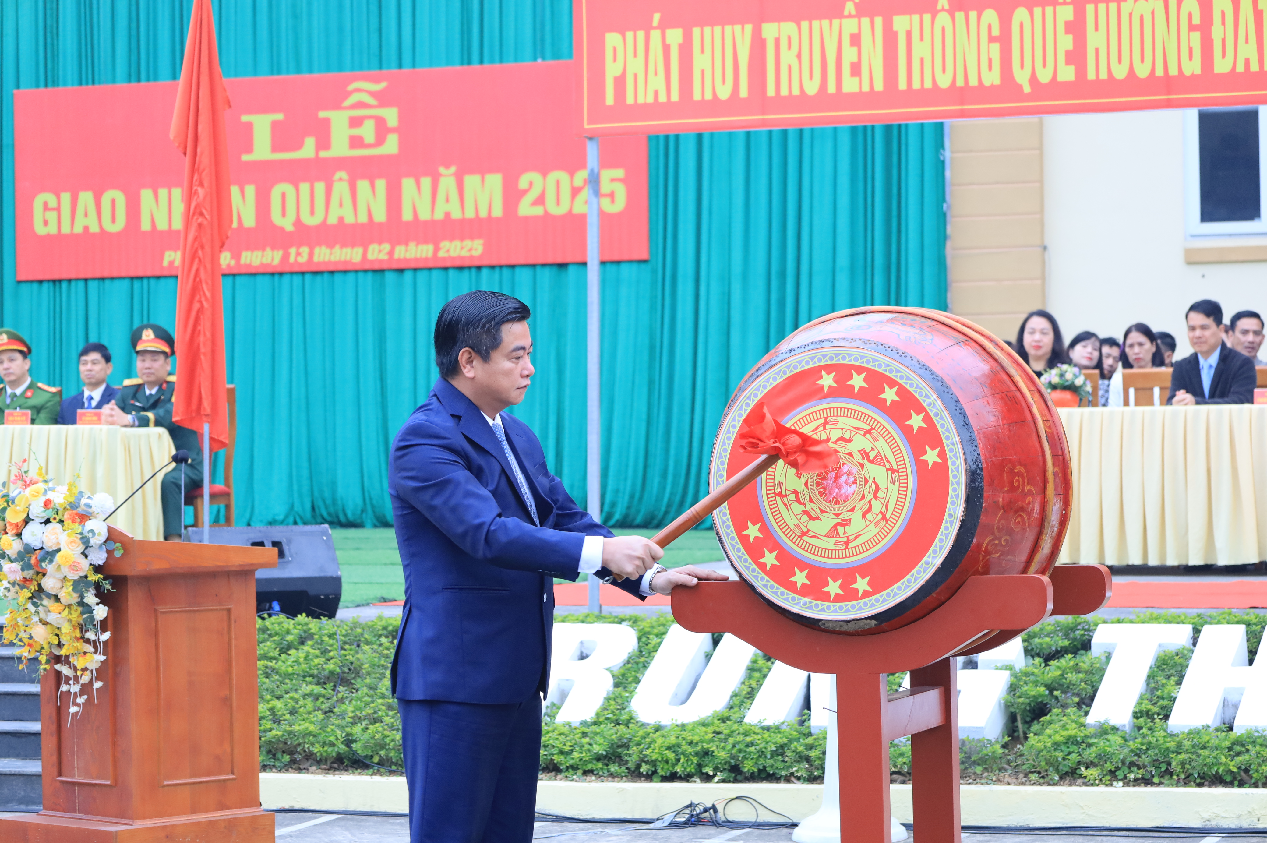 Tại buổi lễ, đồng chí Nguyễn Thị Tố Uyên - TUV, Bí thư Huyện ủy, Chủ tịch HĐND huyện đã thắp lửa truyền thống động viên thanh niên lên đường bảo vệ Tổ quốc, đồng chí Nguyễn Hữu Nhật - Phó bí thư Huyện ủy - Chủ tịch UBND huyện, Chủ tịch Hội đồng Nghĩa vụ quân sự huyện nổi trống mở hội giao quân. Phát biểu động viên các tân binh trước khi lên đường nhập ngũ, đồng chí Nguyễn Hữu Nhật - Chủ tịch UBND huyện mong rằng các Tân binh hãy coi mỗi ngày trong quân ngũ là mỗi ngày được học tập, rèn luyện, cống hiến và trưởng thành, hãy luôn đoàn kết gắn bó, giữ nghiêm kỷ luật quân đội, nỗ lực phấn đấu, vượt qua khó khăn thử thách, sẵn sàng nhận và hoàn thành tốt mọi nhiệm vụ được giao, xứng đáng là thế hệ kế thừa, phát huy truyền thống của quê hương Phù Ninh anh hùng. Đồng chí cũng mong muốn các đơn vị nhận quân giáo dục, rèn luyện, giúp đỡ và tạo điều kiện để các chiến sỹ huyện Phù Ninh hoàn thành nghĩa vụ với Tổ quốc. Đồng thời, đồng chí cũng ghi nhận, biếu dương các gia đình có Tân binh nhập ngũ đã tích cực động viên con em tham gia nghĩa vụ quân sự, nghĩa vụ công an. Đồng chí đề nghị các cấp ủy Đảng, chính quyền, các ban ngành đoàn thể cùng các tầng lớp nhân dân trong huyện tiếp tục quan tâm thực hiện tốt các chính sách hậu phương quân đội để con em mình yên tâm rèn luyện, học tập công tác, hoàn thành xuất sắc nhiệm vụ được giao.