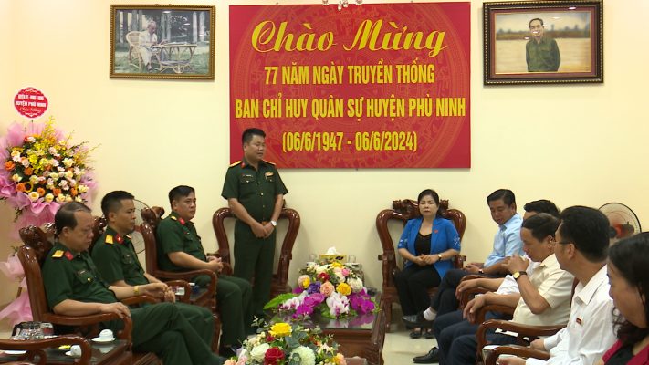 (Phù Ninh) – Nhân dịp kỷ niệm 77 năm Ngày truyền thống Ban Chỉ huy Quân sự huyện Phù Ninh (06/6/1947-06/6/2024), sáng 06/6, các đồng chí lãnh đạo huyện Phù Ninh do đồng chí Nguyễn Thị Tố Uyên – TUV, Bí thư Huyện uỷ, Chủ tịch HĐND huyện, đồng chí Nguyễn Hữu Nhật – Phó Bí thư Huyện uỷ, Chủ tịch UBND huyện, cùng các đồng chí Uỷ viên BTV Huyện uỷ, Văn phòng Huyện ủy đã đến tặng hoa chúc mừng cán bộ, chiến sỹ Ban Chỉ huy Quân sự huyện.