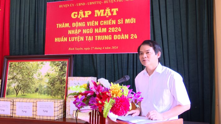 Phát biểu tại buổi gặp mặt, đồng chí Nguyễn Quang Vinh – Phó bí thư Thường trực Huyện ủy đã cảm ơn lãnh đạo chỉ huy các đơn vị đã luôn quan tâm, tạo điều kiện, môi trường huấn luyện tốt nhất cho các tân binh, trong đó có các tân binh của huyện Phù Ninh; mong muốn thời gian tới lãnh đạo chỉ huy các đơn vị tiếp tục giúp đỡ các tân binh rèn luyện, phấn đấu để có nhiều chiến sĩ xuất sắc, trở thành Đảng viên và sĩ quan trong tương lai. Đồng chí Phó bí thư Thường trực Huyện ủy cũng đề nghị các tân binh huyện nhà cần nêu cao tinh thần trách nhiệm, nỗ lực phấn đấu nhiều hơn nữa trong công tác huấn luyện, chấp hành nghiêm kỷ luật quân đội, đoàn kết, gắn bó chặt chẽ với đơn vị, đóng góp công sức xây dựng đơn vị vững mạnh toàn diện. Ở hậu phương, cấp ủy, chính quyền các cấp và gia đình luôn quan tâm theo dõi quá trình công tác, trưởng thành của các chiến sỹ và sẵn sàng hỗ trợ, giúp đỡ, động viên các gia đình có quân nhân tại ngũ gặp khó khăn; tạo mọi điều kiện thuận lợi để các đồng chí yên tâm rèn luyện, công tác.