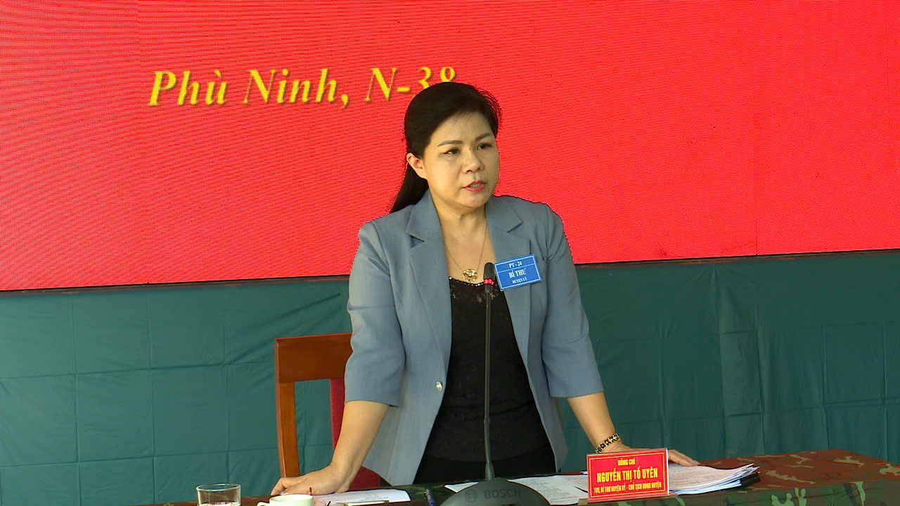 Phát biểu rút kinh nghiệm, đồng chí Nguyễn Thị Tố Uyên - Tỉnh ủy viên, Bí thư Huyện ủy, Chủ tịch HĐND huyện đánh giá cao công tác chuẩn bị các điều kiện luyện tập, diễn tập, đồng chí đề nghị Ban Tổ chức thực hiện nhiệm vụ diễn tập khu vực phòng thủ huyện, các thành phần tham gia diễn tập cần chuẩn bị chu đáo về nội dung luyện tập, bảo đảm ngắn gọn, đúng thời gian, sát với tình hình thực tế của địa phương, đặc biệt là thống nhất các chỉ tiêu điều chỉnh cơ cấu kinh tế, văn hóa, xã hội trong các tình trạng quốc phòng; tập trung làm tốt mọi công tác chuẩn bị cho cuộc diễn tập chiến đấu trong KVPT huyện Phù Ninh năm 2024 sẽ diễn ra trong 2 ngày 16 và 17 tháng 10 năm 2024 đạt kết quả cao.