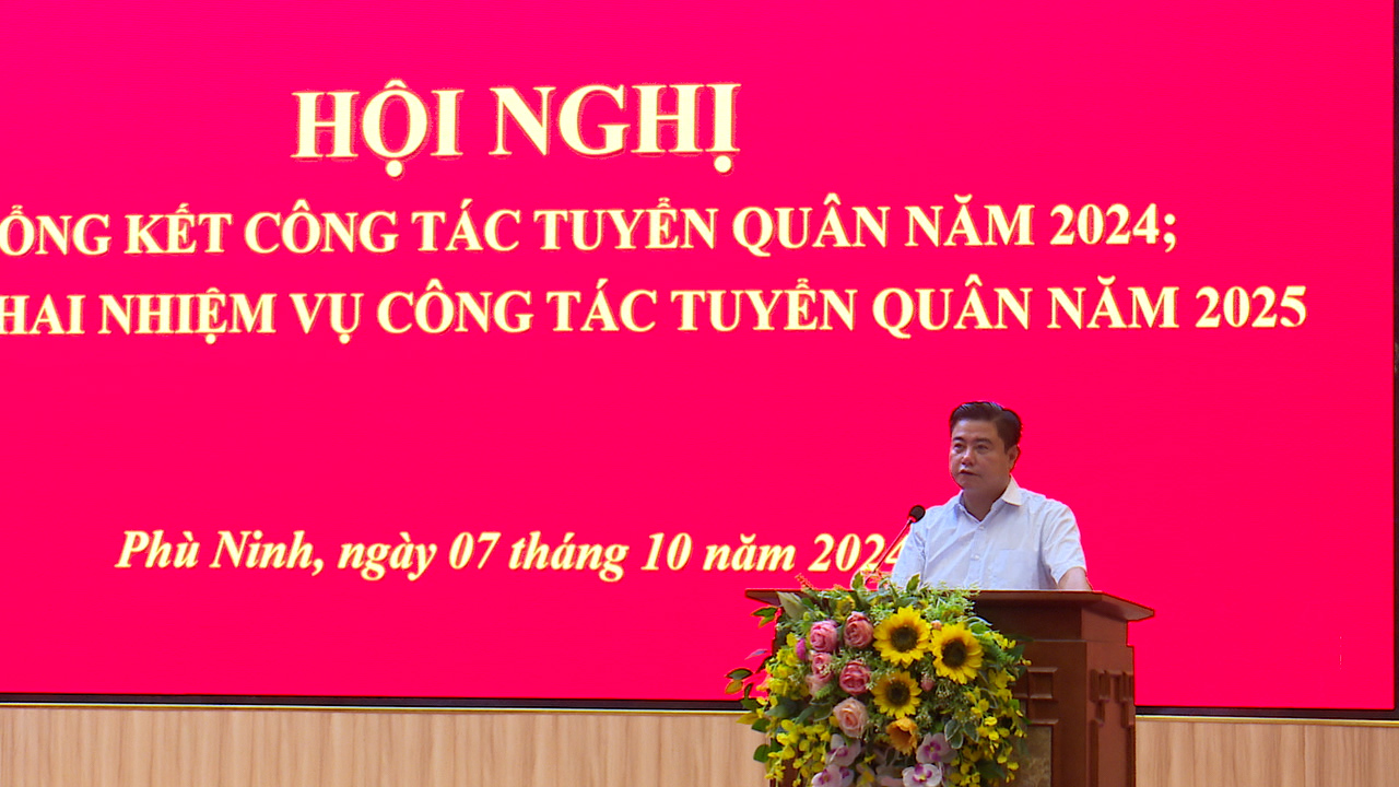 (Phù Ninh)- Sáng 07/10, Hội đồng nghĩa vụ Quân sự huyện Phù Ninh tổ chức Hội nghị tổng kết công tác tuyển quân năm 2024 và triển khai nhiệm vụ công tác tuyển quân năm 2025. Tham dự hội nghị có đồng chí Nguyễn Hữu Nhật – Phó Bí thư Huyện ủy, Chủ tịch UBND, Chủ tịch Hội đồng Nghĩa vụ quân sự huyện; đồng chí Nguyễn Quang Vinh – Phó Bí thư TT Huyện uỷ; các đồng chí thành viên Hội đồng nghĩa vụ quân sự huyện; đại diện các phòng ban ngành đoàn thể huyện; các đồng chí Bí thư, Chủ tịch UBND; trưởng công an, xã đội trưởng các xã, thị trấn trên địa bàn.