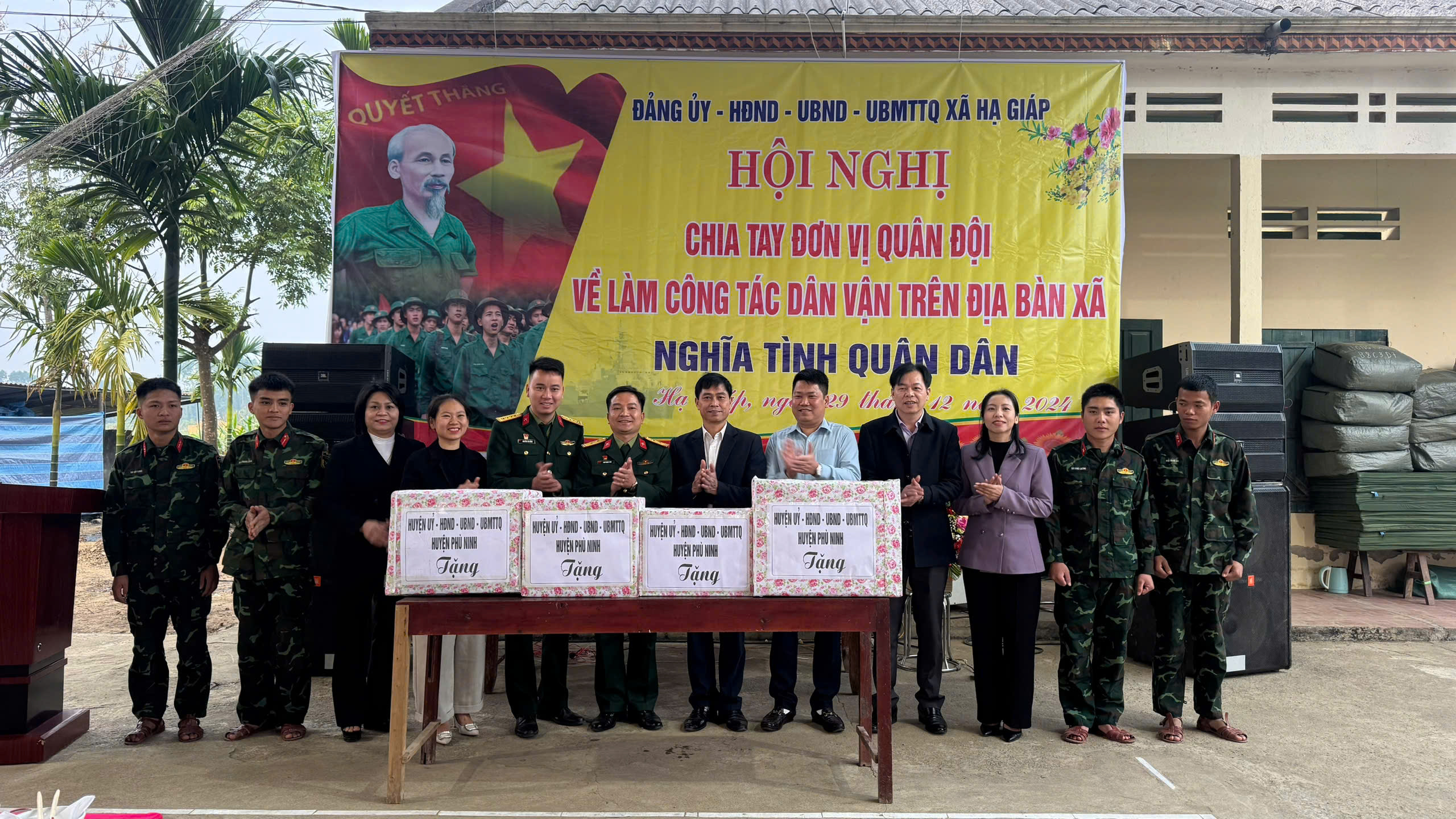 Cũng trong ngày 29/12, Đảng uỷ - HĐND - UBND - UBMTTQ xã Hạ Giáp đã tổ chức chia tay cán bộ, chiến sĩ Trung đoàn 98, Sư đoàn 316, Quân khu 2 làm công tác dân vận trên địa bàn. Về dự có đồng chí Hán Trung Kết - Ủy viên BTV Huyện ủy - Chủ tịch UBMTTQ Việt Nam huyện Phù Ninh, Trung tá Lê Quang Khoa - UVBTV Huyện ủy - Chỉ huy trưởng Ban chỉ huy quân sự huyện, đại diện Ban Tổ chức Huyện uỷ, Hội LHPN huyện, Phòng Tư pháp, Đoàn Thanh niên.