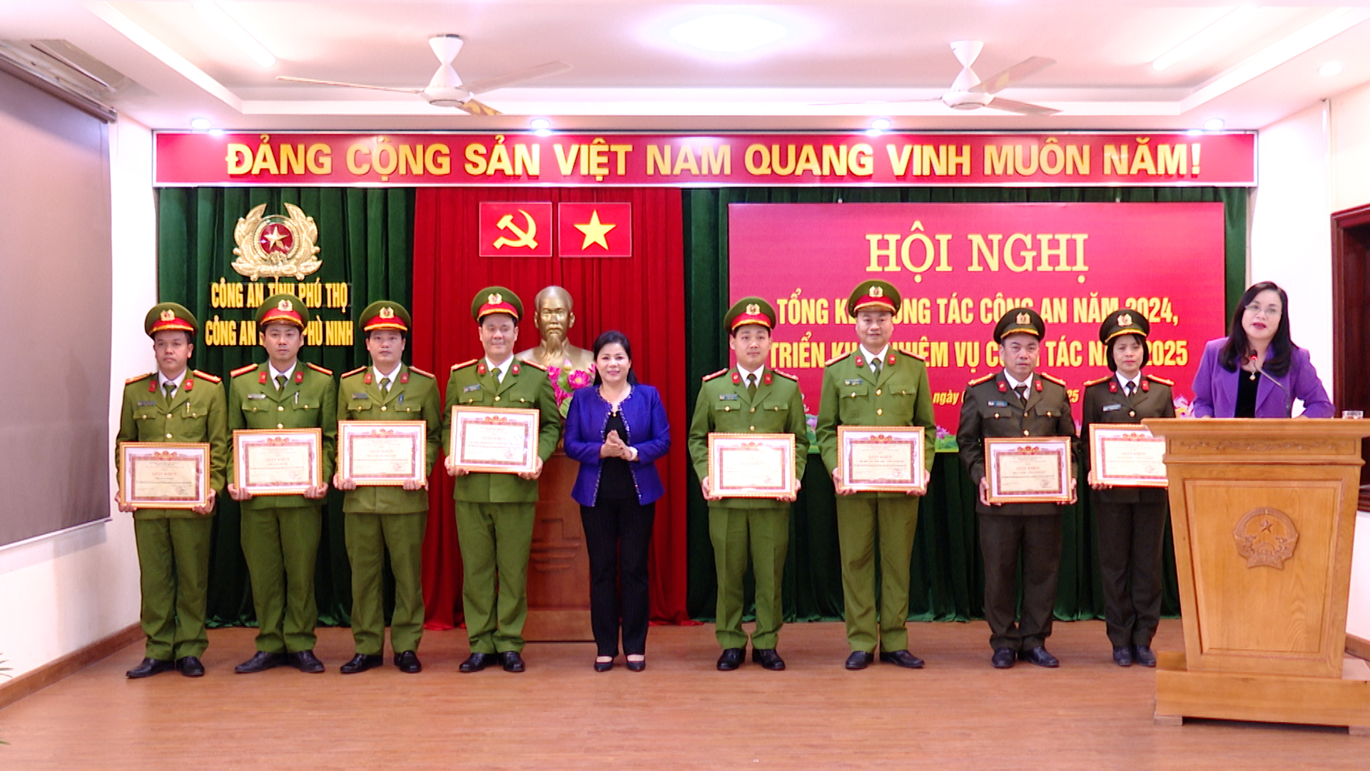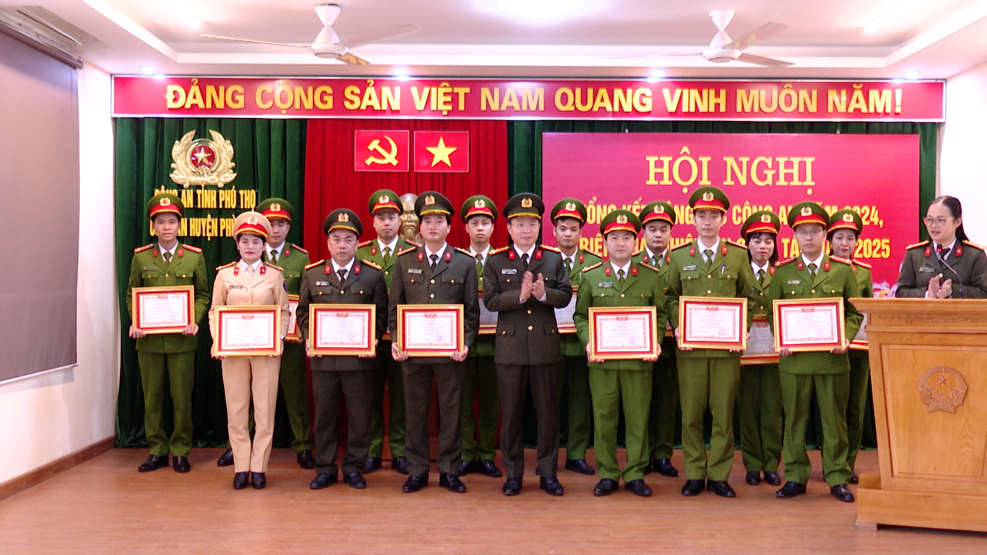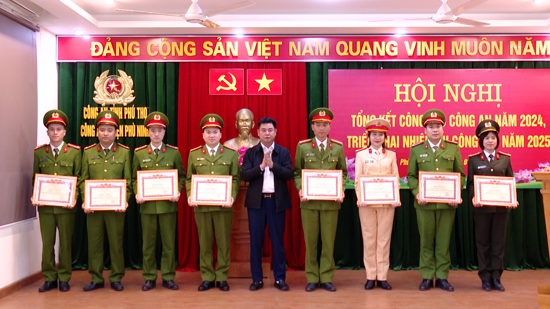 Tại hội nghị, Đại tá Nguyễn Minh Tuấn - Uỷ viên Ban Thường vụ Tỉnh uỷ, Bí thư Đảng uỷ, Giám đốc Công an tỉnh đã trao thưởng cho 7 tập thể đạt danh hiệu “ Đơn vị quyết thắng”, trao danh hiệu “chiến sỹ thi đua cơ sở” cho 18 đồng chí. Đồng chí Nguyễn Thị Tố Uyên – Tỉnh uỷ viên, Bí thư Huyện uỷ, Chủ tịch HĐND huyện tặng giấy khen cho 8 tập thể, đồng chí Nguyễn Hữu Nhật – Phó Bí thư Huyện uỷ, Chủ tịch UBND huyện tặng Giấy khen 8 cá nhân có thành tích xuất sắc trong thực hiện nhiệm vụ công tác năm 2024. Thượng tá Hà Nam – Uỷ viên BTV Huyện uỷ, Công an huyện đã tặng hoa cho các tập thể, cá nhân đã có thành tích xuất sắc trong thực hiện nhiệm vụ.