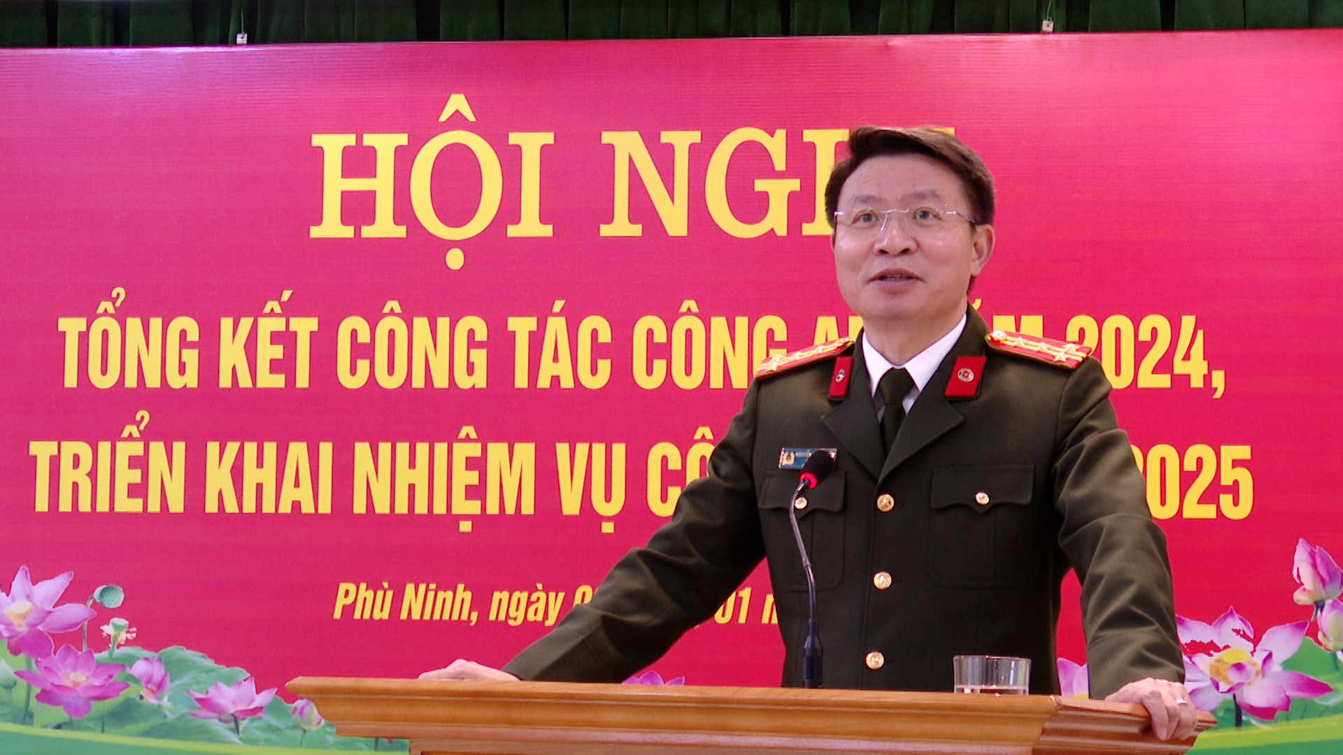 Phát biểu tại hội nghị Đại tá Nguyễn Minh Tuấn - Uỷ viên Ban Thường vụ Tỉnh uỷ, Bí thư Đảng uỷ, Giám đốc Công an tỉnh biểu dương, ghi nhận những kết quả, cố gắng nỗ lực của tập thể, cán bộ chiến sỹ lực lượng Công an huyện đã đạt được trong thực hiện nhiệm vụ công tác năm 2024; nêu lên một số hạn chế còn tồn tại cần khắc phục. Trong năm 2025 đồng chí nhấn mạnh một số nội dung lực lượng công an huyện cần tập trung thực hiện tốt: chú trọng công tác đảm bảo tuyệt đối an ninh, an toàn đại hội đảng các cấp nhiệm kỳ 2025 -2030, tiến tới Đại hội lần thứ IV của Đảng; đảm bảo công tác an ninh trật tự, an ninh nông thôn, an ninh tôn giáo trong đền bù giải phóng mặt bằng thực hiện các dự án trọng điểm trên địa bàn; thực hiện tốt công tác sắp xếp bộ máy đảm bảo tinh gọn, hiệu quả, tăng cường công tác đảm bảo an ninh trật tự, an toàn giao thông trong dịp tết nguyên đán Ất Tỵ 2025; bảo đảm chế độ chính sách cho cán bộ chiến sỹ đảm bảo vui xuân đón tết an toàn, tiết kiệm.