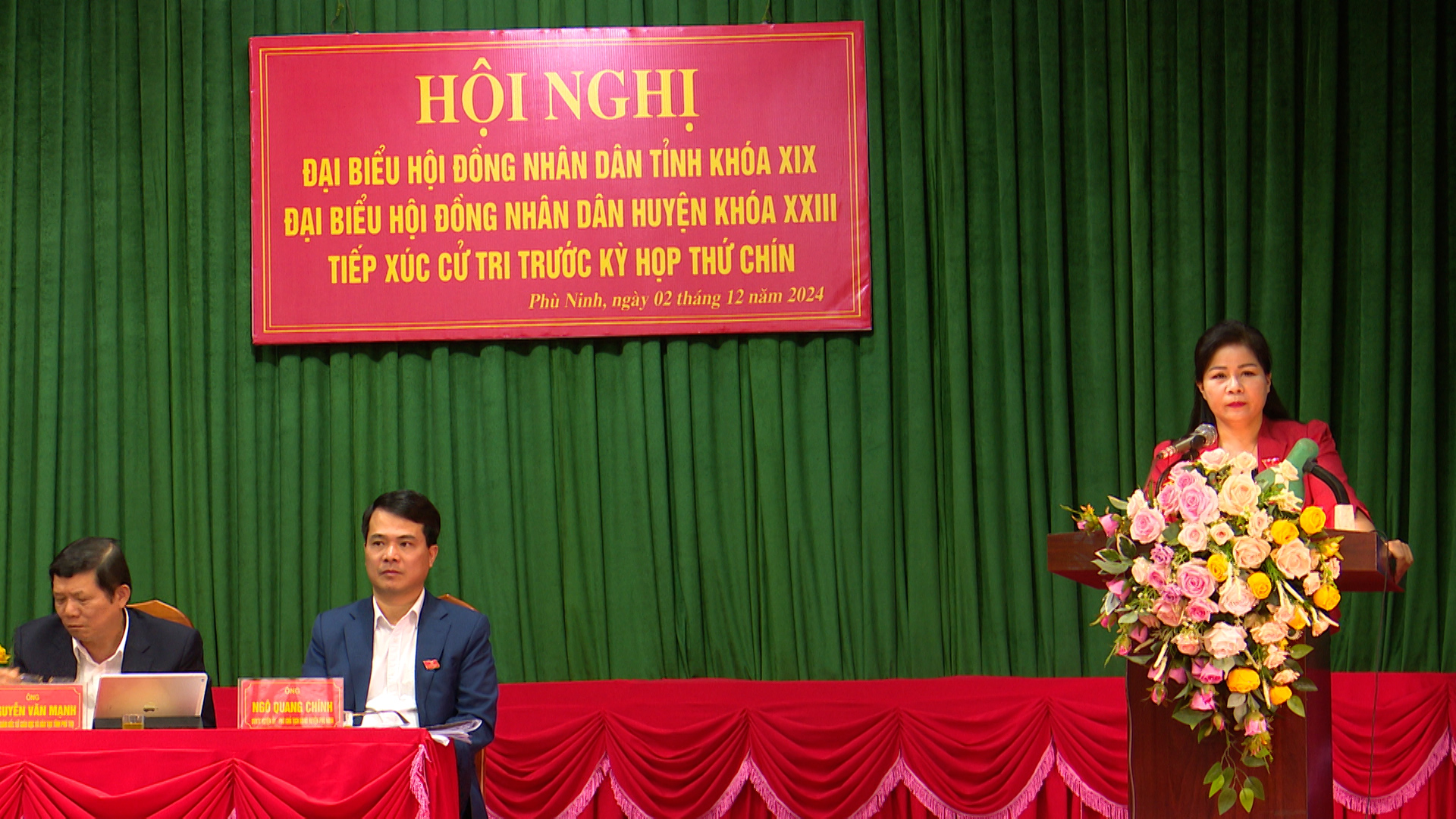 Tại buổi tiếp xúc, bà Nguyễn Thị Tố Uyên - TUV, Bí thư Huyện ủy, Chủ tịch HĐND huyện Phù Ninh thay mặt các đại biểu HĐND tỉnh đã làm rõ một số ý kiến, kiến nghị của cử tri; cảm ơn các ý kiến trách nhiệm, tâm huyết của cử tri, đồng thời, đề nghị xã Tiên Du, xã Hạ Giáp và các cơ quan chức năng của huyện làm rõ một số ý kiến, kiến nghị thuộc thẩm quyền nhằm kịp thời giải quyết, đáp ứng yêu cầu, nguyện vọng chính đáng của cử tri và nhân dân.