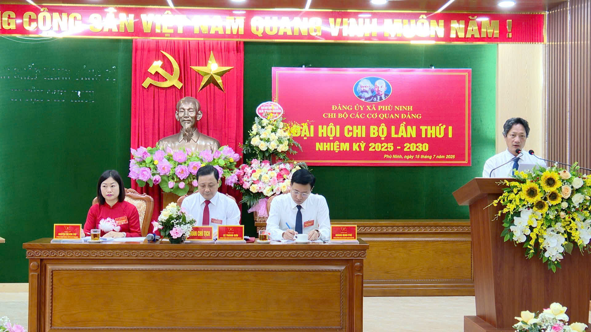 (Phù Ninh)- Ngày 15/7, Chi bộ các cơ quan Đảng xã Phù Ninh tổ chức Đại hội lần thứ I, nhiệm kỳ 2025 – 2030. Dự và chỉ đạo Đại hội có Đồng chí Ngô Đức Thịnh – TUV, Bí thư Đảng ủy, Chủ tịch HĐND xã; Đồng chí Nguyễn Đức Tài – Phó bí thư, Chủ tịch UBND xã; Đồng chí Chu Đức Thắng – Phó bí thư Thường trực Đảng ủy. Tham dự Đại hội có 40 đảng viên thuộc chi bộ các cơ quan Đảng của xã.