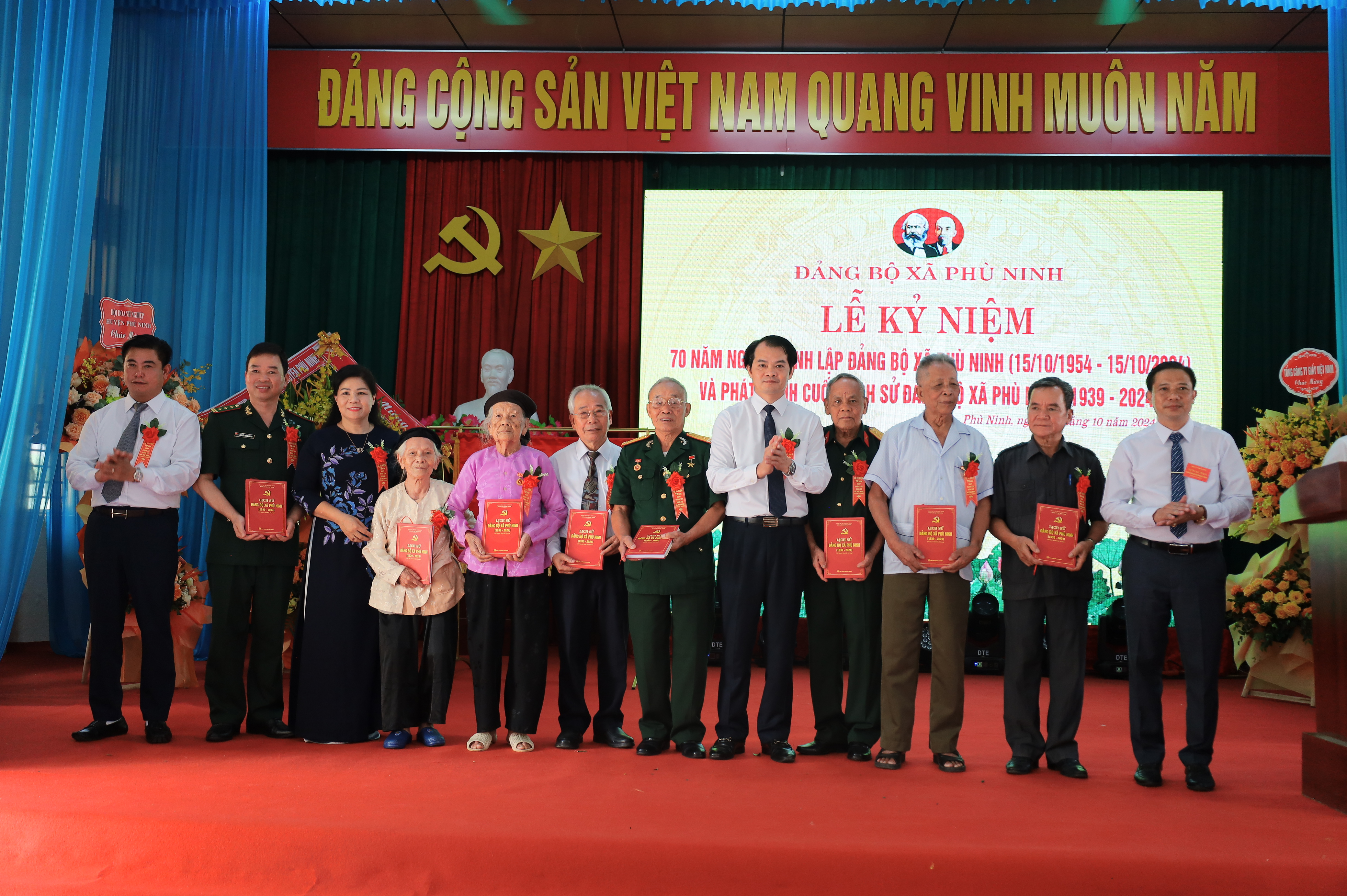 Nhân dịp này, Huyện uỷ - HĐND - UBND - UBMTTQ huyện Phù Ninh đã trao tặng Đảng bộ xã Phù Ninh bức trướng mang dòng chữ “Ban Chấp hành Đảng bộ huyện Phù Ninh tặng Đảng bộ xã Phù Ninh 70 năm Đoàn kết - Đổi mới – Phát triển” và trao tặng lẵng hoa tươi thắm chúc mừng Đảng bộ xã Phù Ninh. Các cơ quan, đơn vị, con em quê hương cũng đã tặng hoa chúc mừng.
