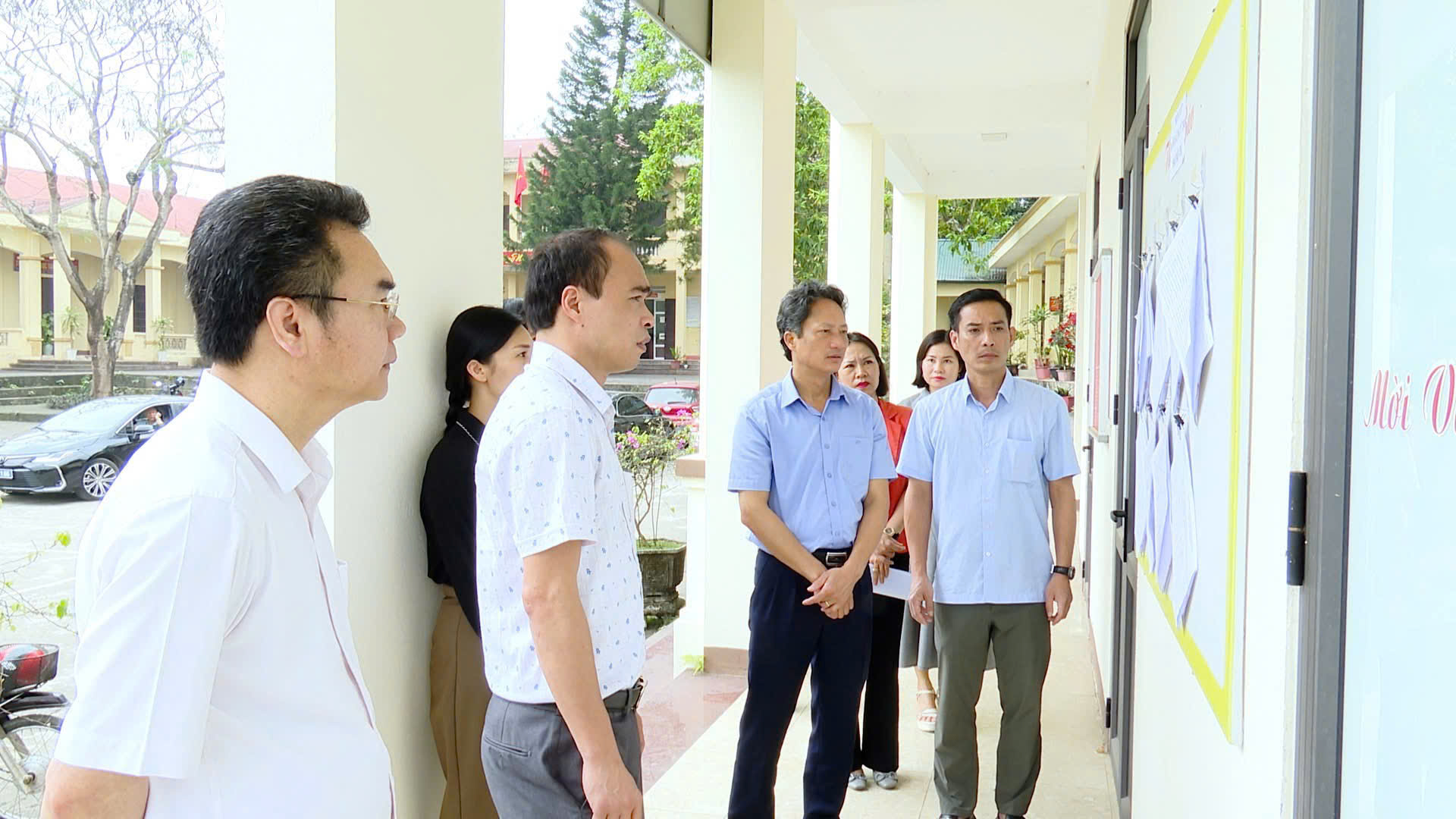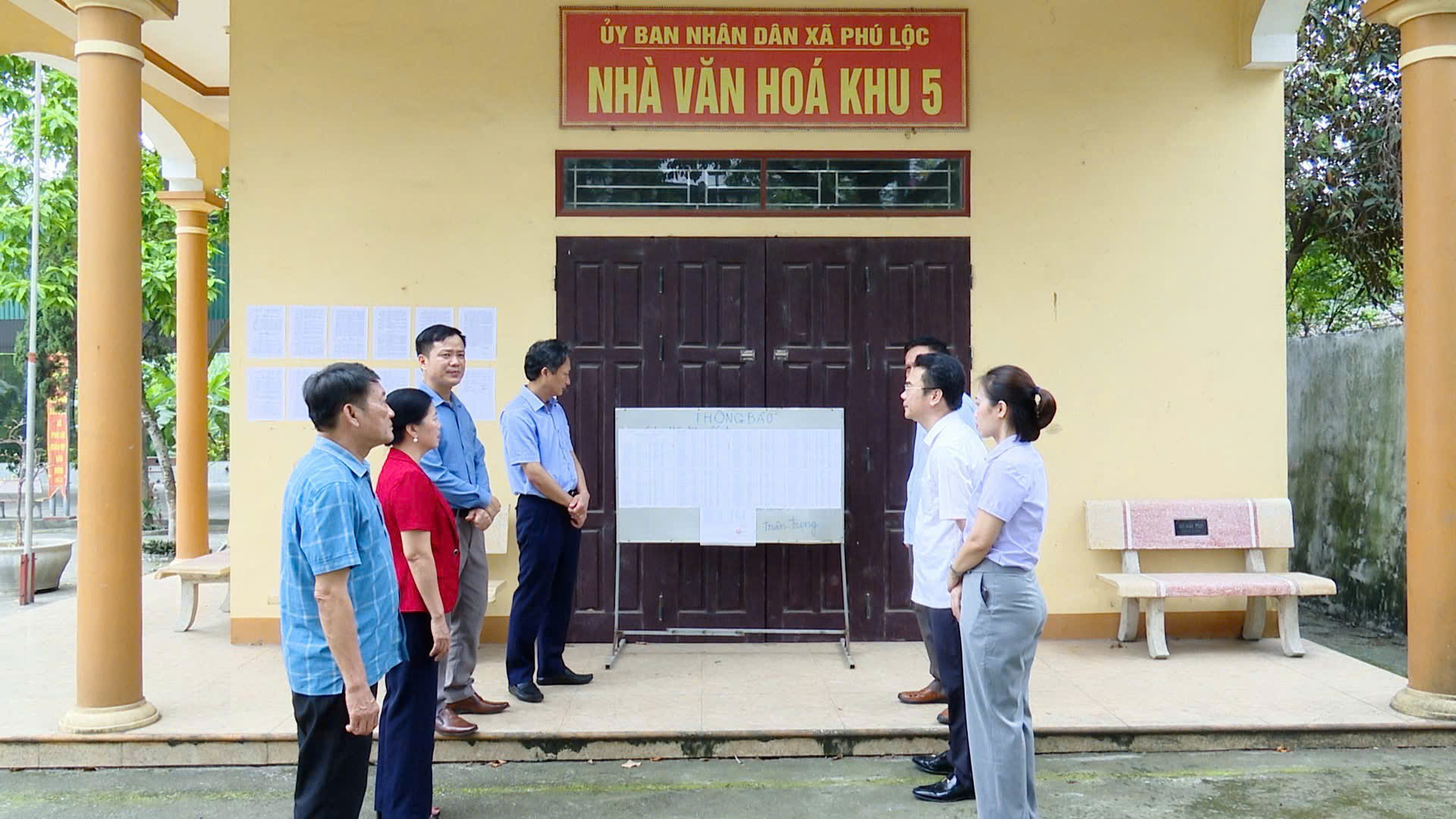 Các đồng chí lãnh đạo huyện Phù Ninh kiểm tra công tác lấy ý kiến cử tri về chủ trương sắp xếp đơn vị hành chính cấp tỉnh, cấp xã
