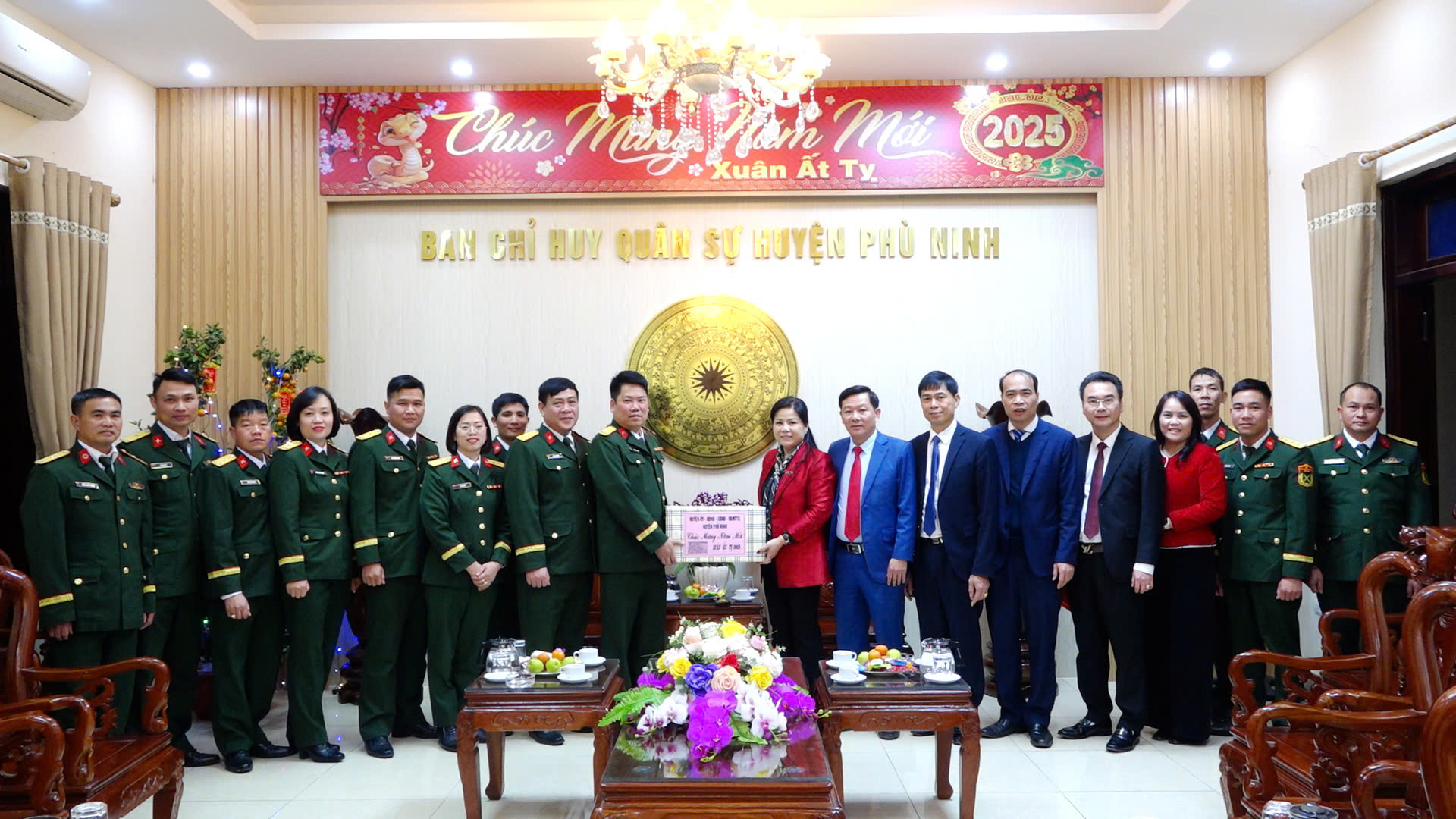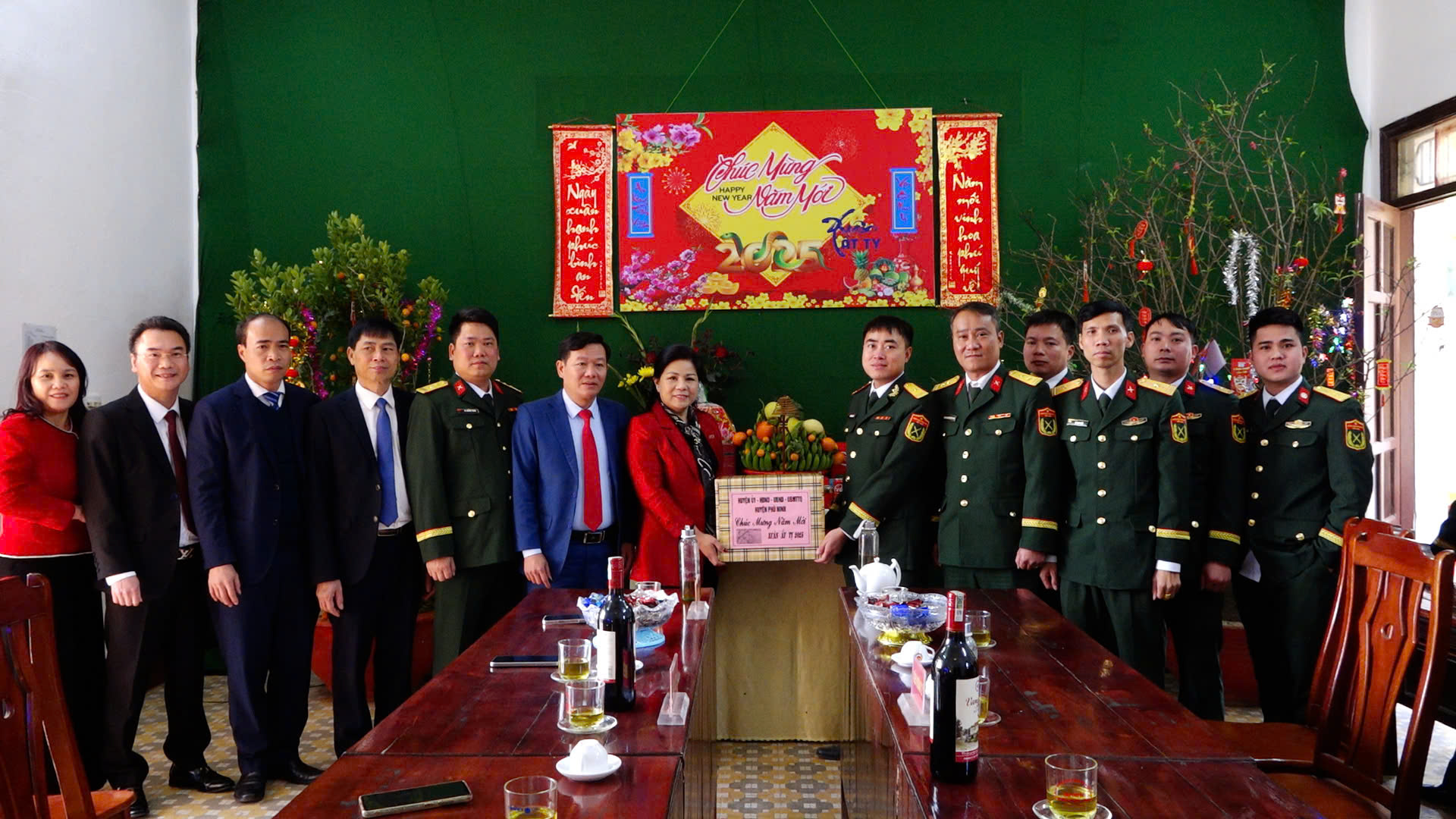 (Phù Ninh)- Chiều ngày 28/1/2025, (tức chiều ngày 29 tháng chạp), đồng chí Nguyễn Thị Tố Uyên - Tỉnh ủy viên, Bí thư Huyện ủy, Chủ tịch HĐND huyện; đồng chí Trịnh Đức Lai - Ủy viên BTV Huyện ủy, Phó Chủ tịch UBND huyện, đồng chí Hán Trung Kết - Ủy viên BTV, Chủ tịch UBMTTQ huyện, đồng chí Nguyễn Minh Quân - Ủy viê BTV Huyện ủy, Trưởng Ban Dân vận Huyện ủy, Trung tá Lê Quang Khoa – Uỷ viên BTV Huyện uỷ, Chỉ huy trưởng Ban Chỉ huy quân sự huyện cùng các đồng chí lãnh đạo Văn phòng Huyện ủy đã đến thăm, chúc tết, động viên các đơn vị trực làm nhiệm vụ trong dịp tết.