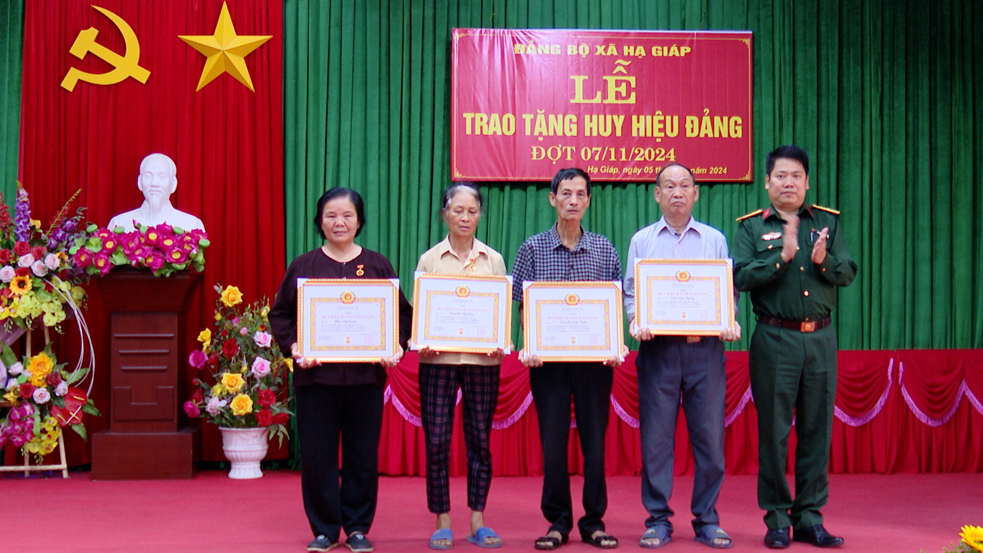 Đợt 07/11/2024 này, có 02 đồng chí Đảng viên thuộc Đảng bộ xã Hạ Giáp vinh dự được nhận huy hiệu 65 năm tuổi Đảng là đồng chí Nguyễn Thị Kiên, Sinh năm 1933 thuộc chi bộ 3 và đồng chí Nguyễn Văn Anh, Sinh năm 1935 thuộc chi bộ 5; có 01 đồng chí vinh dự nhận huy hiệu 60 năm tuổi Đảng là đồng chí Nguyễn Hựu, sinh năm 1930 thuộc chi bộ 5 và 06 đồng chí vinh dự nhận huy hiệu từ 30 năm đến 55 năm tuổi Đảng.