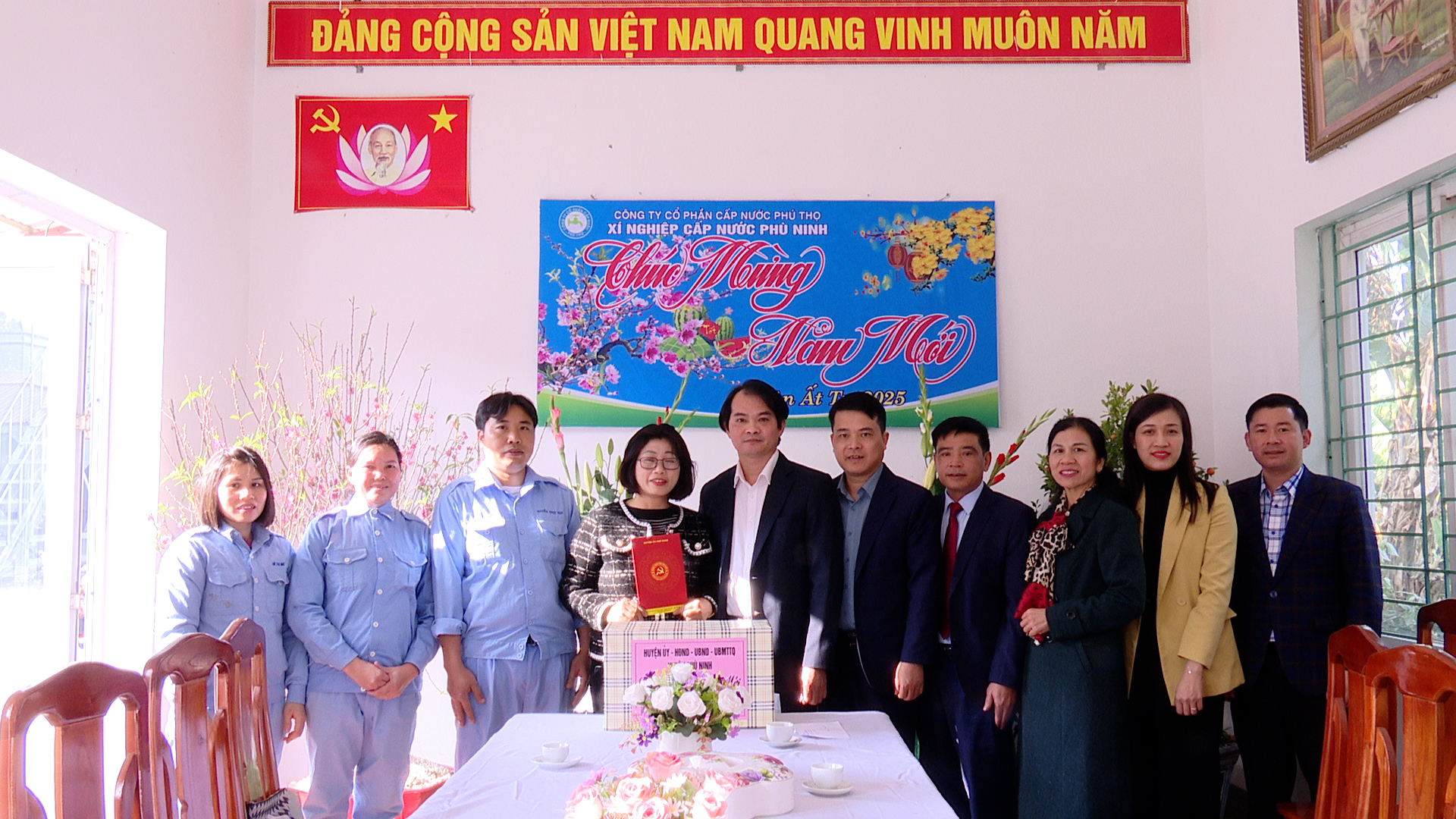 Thăm, động viên, tặng quà và chúc tết Xí nghiệp cấp nước Phù Ninh, đồng chí Nguyễn Quang Vinh – Phó bí thư Thường trực Huyện ủy đã ghi nhận, biểu dương những kết quả mà đơn vị đã đạt được, đã nỗ lực vượt khó, hoàn thành tốt các chỉ tiêu sản xuất kinh doanh, đảm bảo cung cấp nước phục vụ đời sống của người dân cũng như các hoạt động sản xuất kinh doanh trên địa bàn, đóng góp tích cực vào thành tựu phát triển kinh tế - xã hội của huyện. Đồng chí đề nghị năm 2025, đơn vị tiếp tục khắc phục khó khăn, tập trung đầu tư mở rộng sản xuất, mở rộng thị trường, ứng dụng khoa học công nghệ tự động hóa để nâng cao chất lượng nguồn nước góp phần nâng cao chất lượng đời sống nhân dân; tiếp tục duy trì sản xuất - kinh doanh ổn định. Trước mắt, xí nghiệp cần đảm bảo cấp nước ổn định, liên tục phục vụ nhân dân vui Xuân đón Tết cổ truyền của dân tộc.