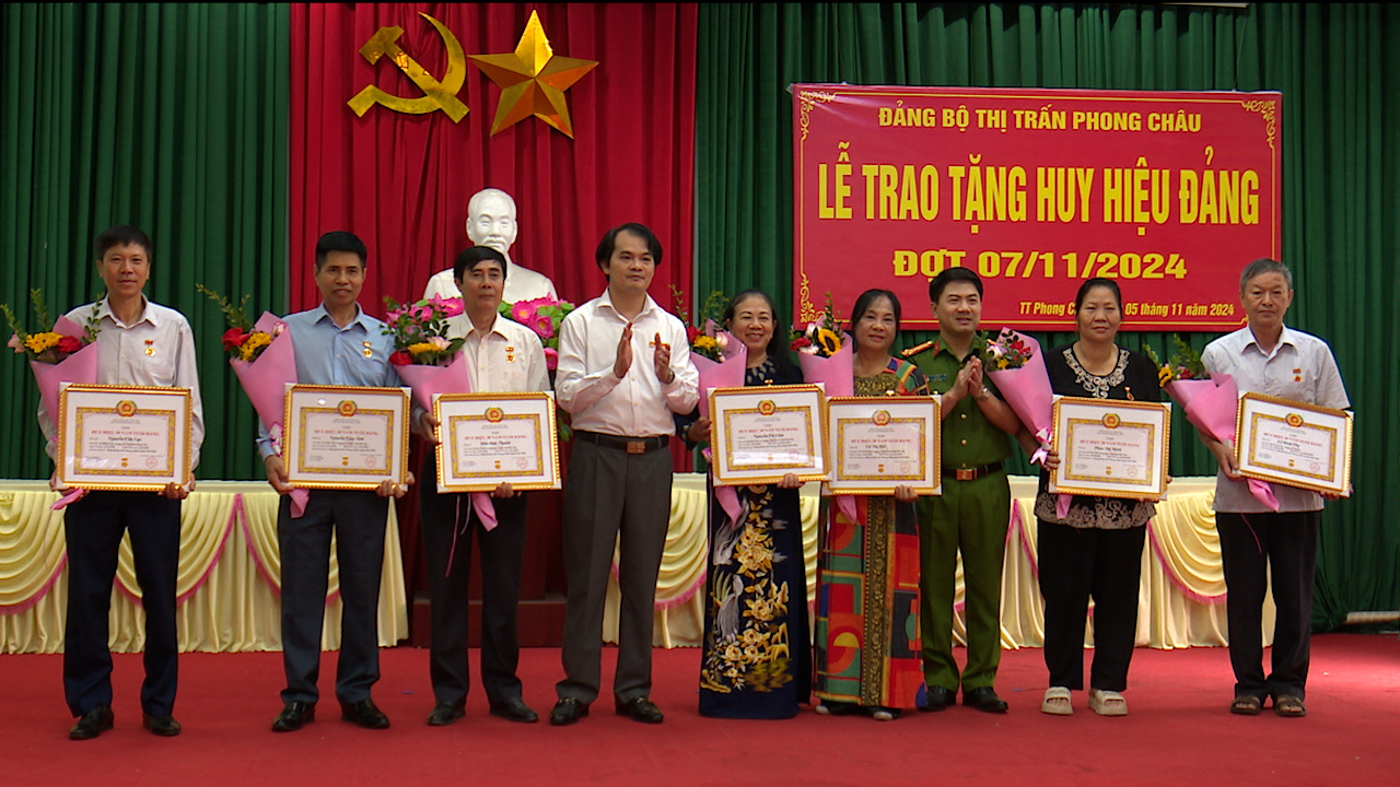 Trong đợt 07/11/2024, Đảng bộ thị trấn Phong Châu có tổng số 23 đồng chí đảng viên được nhận Huy hiệu 30, 40, 45, 50, 55 và 60 tuổi Đảng, trong đó có 4 đồng chí được nhận Huy hiệu 60 năm tuổi Đảng là: đồng chí Nguyễn Quang Nghĩa, sinh năm 1937, đảng viên thuộc Chi bộ 6; đồng chí Nguyễn Thị Cán, sinh năm 1945; đồng chí Nguyễn Thị Loan, sinh năm 1947, đảng viên thuộc Chi bộ 9 và đồng chí Đỗ Thị Lúa, sinh năm 1940, đảng viên thuộc Chi bộ Núi Miếu. Trong suốt quá trình hoạt động cách mạng cũng như quá trình công tác tại địa phương, các đồng chí luôn tích cực, hoàn thành tốt mọi nhiệm vụ được giao, luôn gương mẫu chấp hành chủ trương, đường lối của Đảng, chính sách, pháp luật của Nhà nước; giáo dục con cháu học tập, lao động tham gia phát triển kinh tế - xã hội tại địa phương.