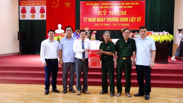 Trung tâm Điều dưỡng người có công tỉnh Phú Thọ hiện đang quản lý, điều trị, nuôi dưỡng, chăm sóc gần 30 thương binh, bệnh binh nặng, tỷ lệ thương tật từ 81% trở lên ; Trung tâm còn điều dưỡng luân phiên hơn 2.000 đến 3.000 thương binh, bệnh binh trên địa bàn các tỉnh phía bắc. Cũng tại đây thay mặt các đồng chí lãnh đạo huyện đoàn đã tặng quà cho 01 thương binh nặng của huyện Phù Ninh đang được chăm sóc, điều trị, nuôi dưỡng tại đây là thương binh Vũ Thiện Tứ, xã Lệ Mỹ.