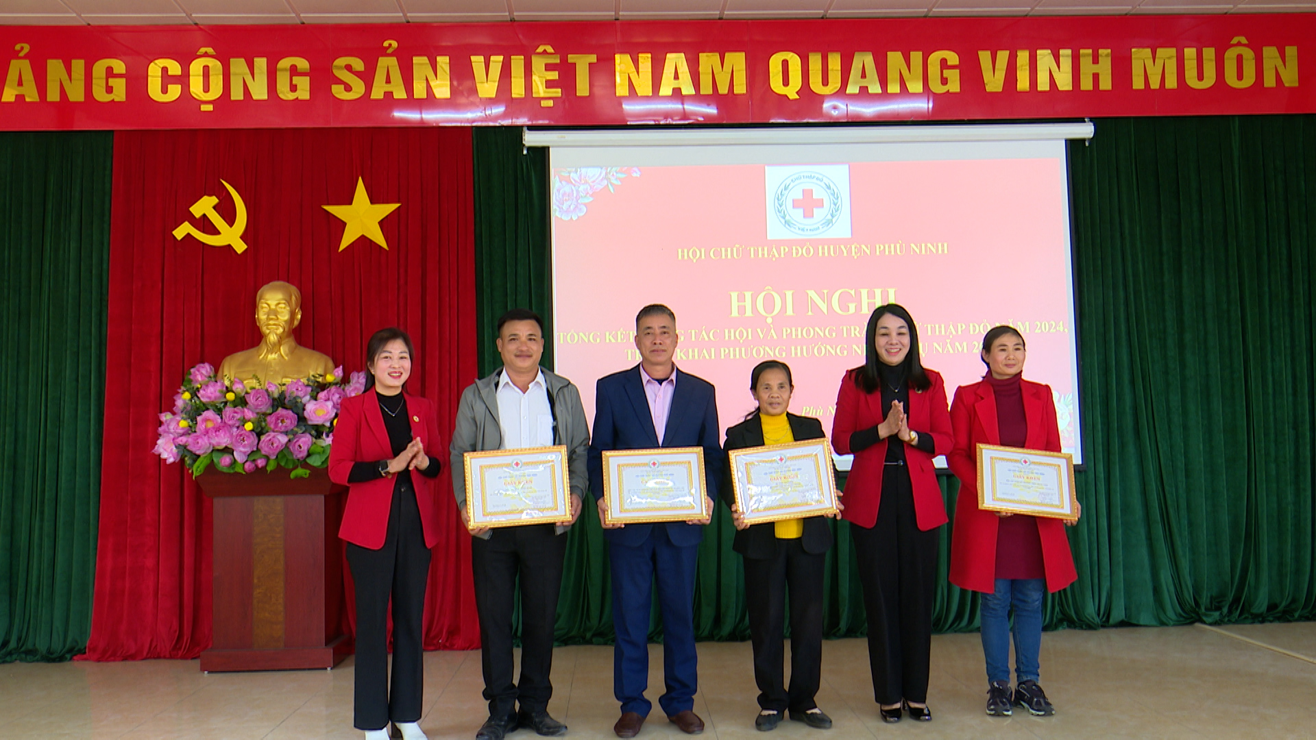 Dịp này, Trung ương Hội Chữ thập đỏ đã tặng Bằng khen cho 01 tập thể, 01 cá nhân, tỉnh Hội đã tặng Bằng khen, Giấy khen cho 06 tập thể và 03 cá nhân; Hội Chữ thập đỏ huyện tặng Giấy khen cho 02 tập thể và 02 cá nhân có thành tích xuất sắc trong công tác Hội, phong trào nhân đạo từ thiện năm 2024 và hoạt động khắc phục hậu quả thiệt hại do cơ bão số 3 gây ra.