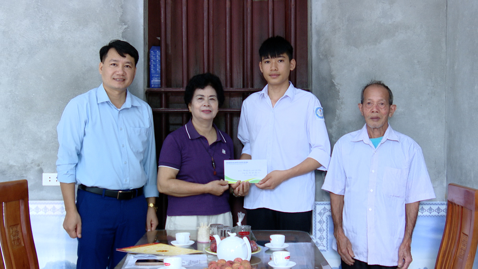 (Phù Ninh)- Nhằm động viên khích lệ kịp thời, cũng như tinh thần vượt khó vươn lên học tập của em Nguyễn Xuân Phú, Trường THCS Trị Quận, là thủ khoa đầu vào môn lịch sử và địa lý 1 ( chuyên Lịch sử ), Ngày 16.6.2025, Hội khuyến học huyện Phù Ninh, BGH trường THCS Trị Quận đã đến gia đình thăm, động viên và trao quà với số tiền 2 triệu đồng cho em.