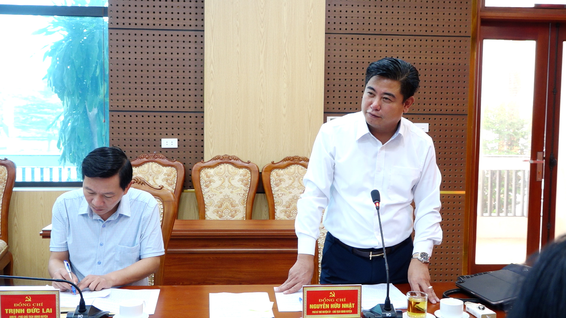 Đồng chí Nguyễn Hữu Nhật - Phó Bí thư Huyện uỷ, Chủ tịch UBND huyện phát biểu tại hội nghị.