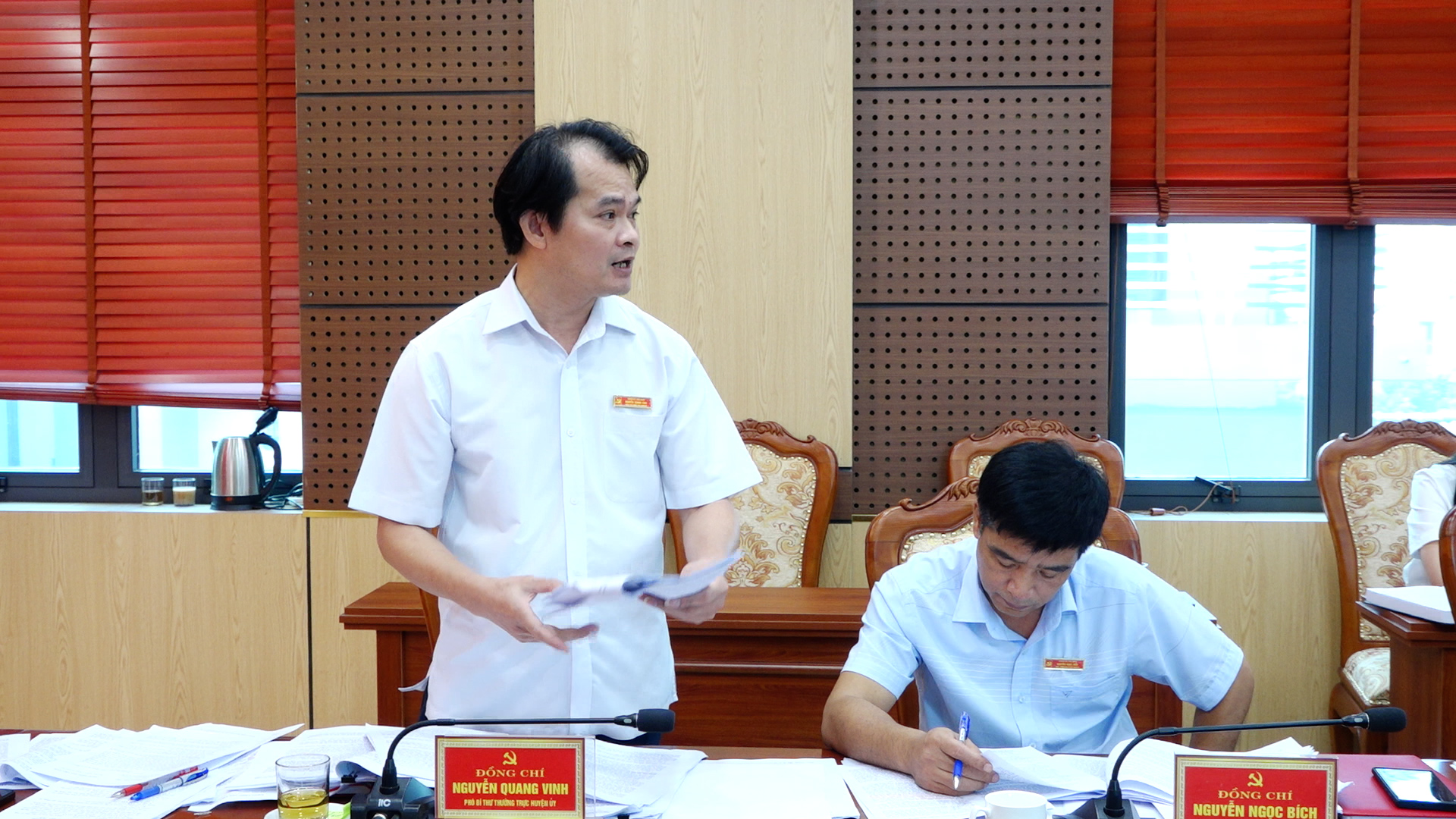 Đồng chí Nguyễn Quang Vinh - Phó Bí thư Thường trực Huyện uỷ phát biểu tại hội nghị.