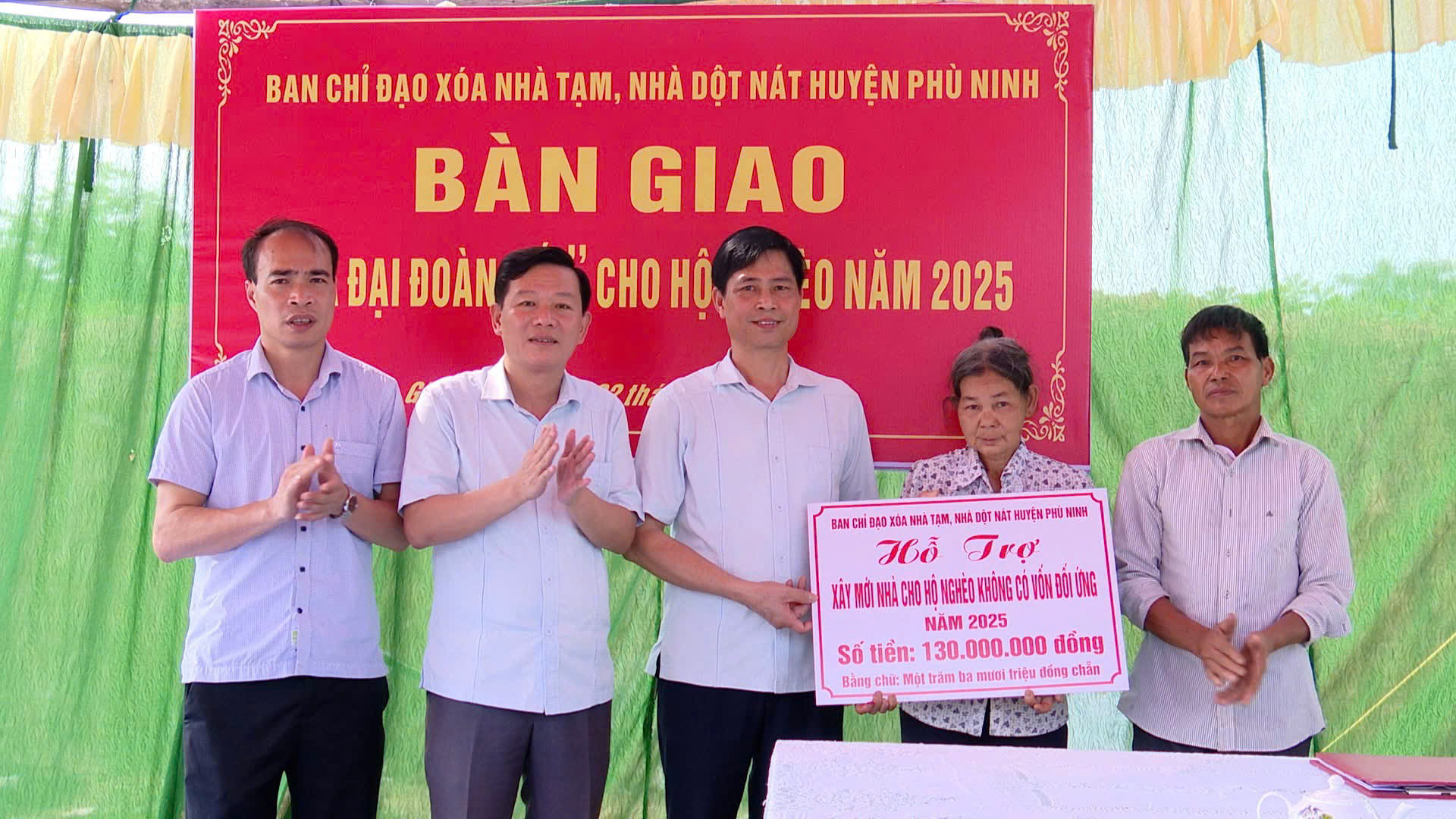 Tại xã Phú Mỹ Ban Chỉ đạo xoá nhà tạm, nhà dột nát huyện tổ chức bàn giao nhà cho ông Lê Văn Chí sinh năm 1942 ở khu 9 xã Phú Mỹ. Ông Chí là hộ nghèo, đơn thân, bản thân ông đã già yếu không đủ sức lao động. Căn nhà lá ông đang ở đã bị siêu vẹo và xuống cấp sau nhiều năm sử dụng, thường xuyên bị dột vào mùa mưa. Được sự quan tâm, hỗ trợ của Ban Chỉ đạo, các cấp, các ngành, sự giúp đỡ của địa phương và bà con trong khu, anh em dòng họ đã tiến hành xây dựng căn nhà mới cho ông với tổng diện tích 85m2, cửa gỗ và nhôm kính, mái lợp proximăng với kinh phí 130 triệu đồng.