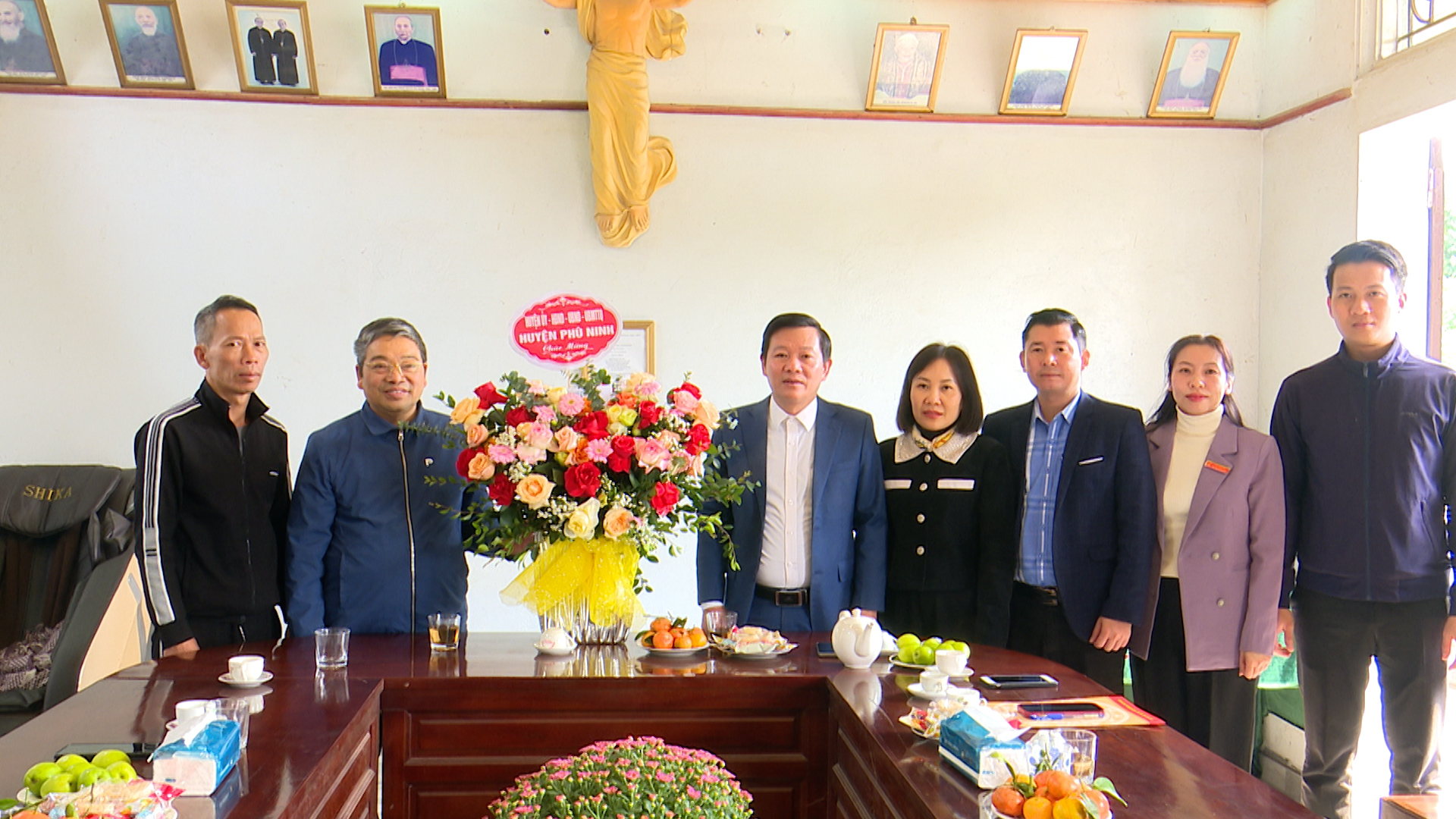 (Phù Ninh)- Nhân dịp Lễ Noel 2024 (Thiên Chúa giáng sinh). Sáng nay 19/12/2024, Đoàn công tác của huyện Phù Ninh do đồng chí Trịnh Đức Lai - Ủy viên BTV huyện ủy, P.Chủ tịch UBND huyện làm Trường đoàn đã đi thăm tặng hoa, quà chúc mừng các Chức sắc Đạo công giáo tại các Nhà thờ và các Giáo xứ trên địa bàn huyện. Cùng đi có các đồng chí lãnh đạo Ban Dân vân huyện ủy, phòng Nội vụ, Văn phòng HĐND &UBND huyện; các đồng chí lãnh đạo Đảng ủy, chính quyền, MTTQ và các ban ngành, đoàn thể các xã Lệ Mỹ, Phú Mỹ và xã Tiên Phú.