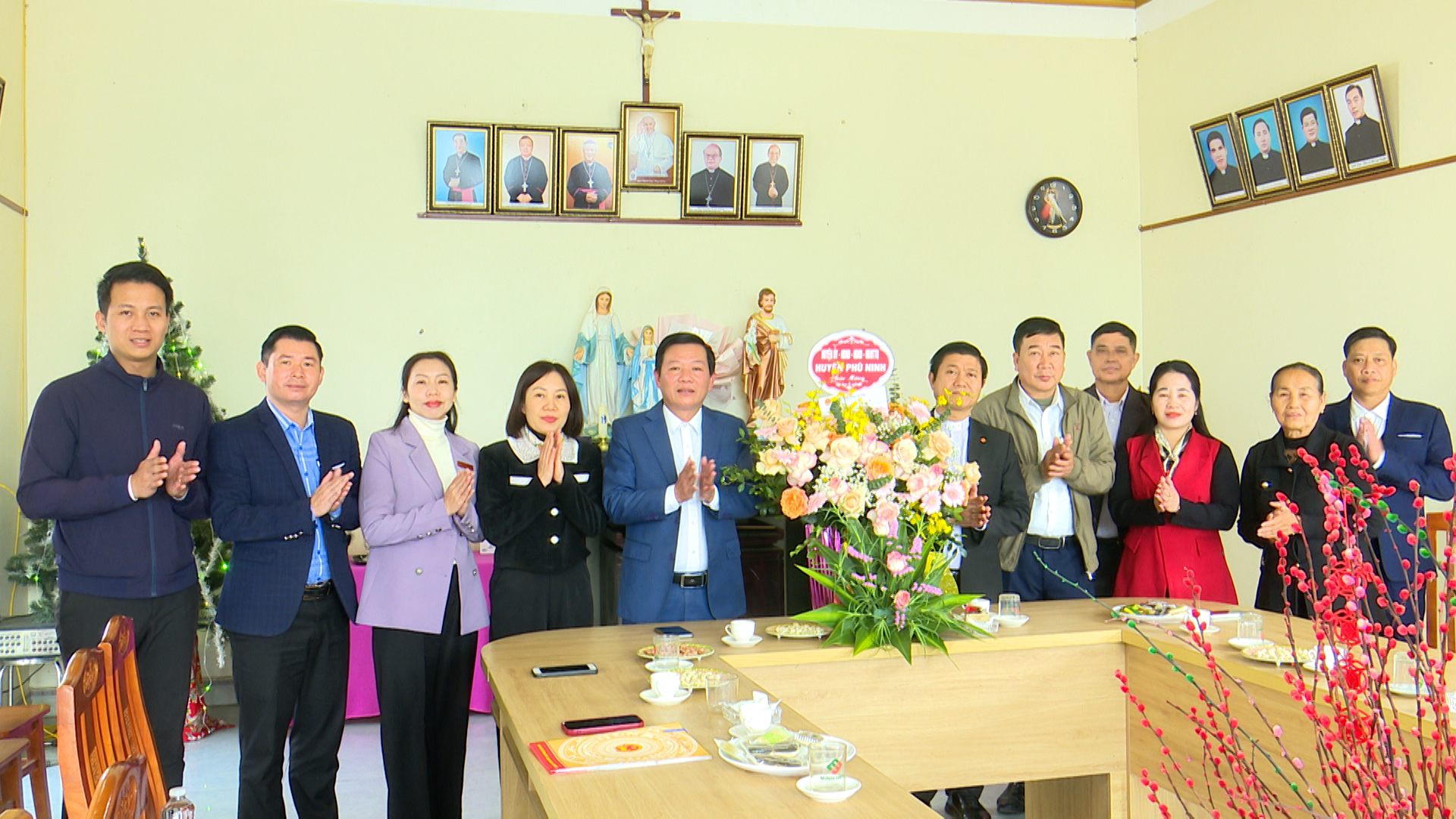 Tại những nơi đến thăm, đồng chí Trịnh Đức Lai - Ủy viên BTV huyện ủy- PCT UBND huyện đã thông tin nhanh đến các Linh mục và bà con giáo dân về tinh hình phát triển kinh tế xã hội trên địa bàn huyện. Theo đó trong năm 2024, mặc dù còn gặp nhiều khó khăn song dưới sự lãnh đạo, chỉ đạo của Huyện ủy, HĐND và UBND, các ban ngành, đoàn thể huyện; các xã, thị trấn và sự đồng thuận của bà con Nhân dân trên địa bàn đã thực hiện thắng lợi các nhiệm vụ phát triển kinh tế - xã hội trên địa bàn. Đến nay, 11/11 chỉ tiêu phát triển kinh tế xã hội năm 2024 đều đạt và vượt so với kế hoạch trong đó có 04 chỉ tiêu vượt (02 chỉ tiêu quan trọng về kinh tế vượt xa so kế hoạch: Tổng vốn đầu tư toàn xã hội đạt trên 2.942 tỷ đồng, đạt 135,9% kế hoạch, Tổng thu NSNN trên địa bàn đạt trên 428 tỷ đồng, đạt 162,5% kế hoạch). Toàn huyện đã có 16/16 xã đạt chuẩn NTM (đạt tỷ lệ 100%), 11 khu dân cư đạt chuẩn khu dân cư NTM kiểu mẫu, trong đó có 02 xã (Trung Giáp, Phú Lộc) đã được UBND tỉnh công nhận xã nông thôn mới nâng cao, Thị trấn Phong Châu đã đạt chuẩn đô thị văn minh. Về huyện Nông thôn mới cơ bản các tiêu chí đã hoàn thành. Các lĩnh vực văn hóa, y tế, giáo dục, an sinh xã hội tiếp tục được quan tâm, thực hiện tốt, đời sống vật chất, tinh thần của nhân dân ngày càng được nâng cao. Tỷ lệ hộ nghèo giảm còn 1,32%; tỷ lệ hộ cận nghèo giảm còn 1,29%; Tỷ lệ tham gia bảo hiểm y tế đạt trên 93,5%. Đặc biệt, việc phòng chống và khắc phục bão Yagi (bão số 3), huyện đã chủ động thực hiện các biện pháp khẩn trương, quyết liệt, hiệu quả, giảm thiểu thiệt hại tối đa do bão lũ gây ra, sớm ổn định đời sống Nhân dân. Công tác quốc phòng, quân sự địa phương được triển khai thực hiện tốt; an ninh chính trị, trật tự an toàn xã hội được giữ vững...