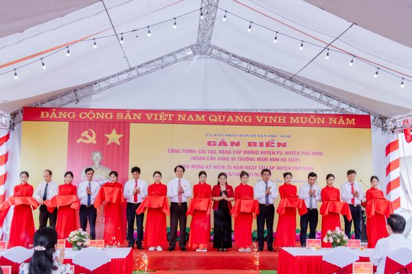 (Phù Ninh)- Ngày 15/8/2024, huyện Phù Ninh long trọng tổ chức gắn biển 02 công trình chào mừng kỷ niệm 25 năm tái lập huyện Phù Ninh (01/9/1999 – 01/9/2024). Dự lễ gắn biển 02 công trình có đồng chí Nguyễn Thị Tố Uyên – Tỉnh ủy viên, Bí thư Huyện ủy, Chủ tịch HĐND huyện; đồng chí Nguyễn Hữu Nhật – Phó Bí thư Huyện ủy, Chủ tịch UBND huyện; đồng chí Nguyễn Quang Vinh – Phó bí thư Thường trực Huyện ủy; các đồng chí Ủy viên BTV Huyện ủy; lãnh đạo các phòng, cơ quan, đơn vị, lãnh đạo Đảng ủy, UBND Thị trấn Phong Châu và xã Hạ Giáp.