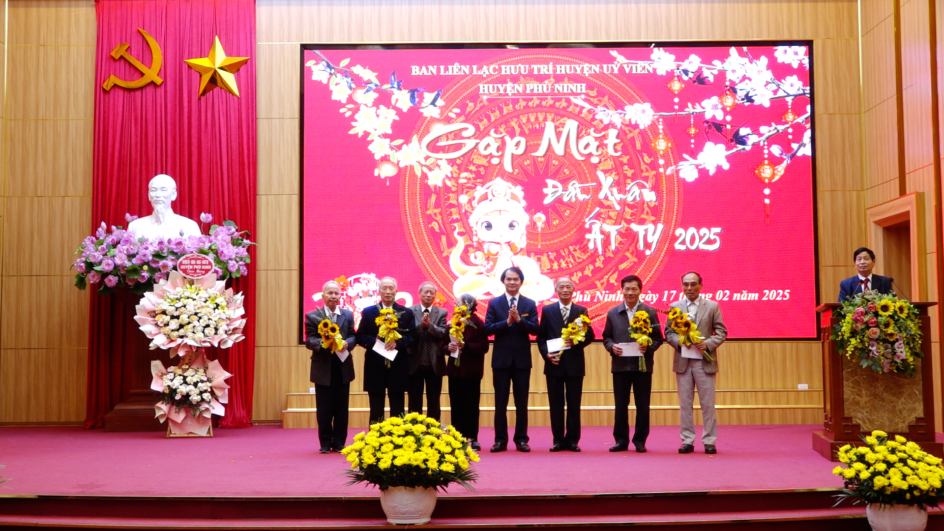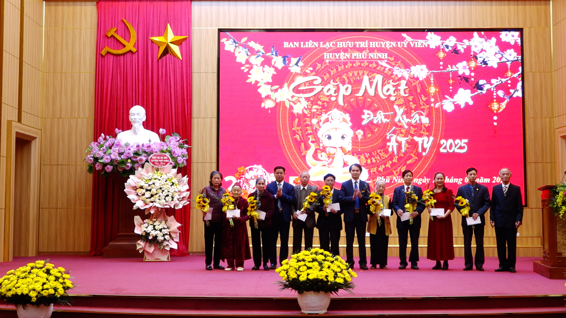 Nhân dịp này, Huyện uỷ Phù Ninh đã tặng hoa, quà chúc tết các đồng chí trong Ban liên lạc hưu trí Huyện ủy viên Phù Ninh nhân dịp đầu xuân Ất Tỵ. Tại buổi gặp mặt, Ban Liên lạc hưu trí Huyện ủy viên huyện Phù Ninh đã tổ chức mừng thọ cho các hội viên 70, 75, 80, 85 tuổi và các hội viên nhận huy hiệu Đảng.