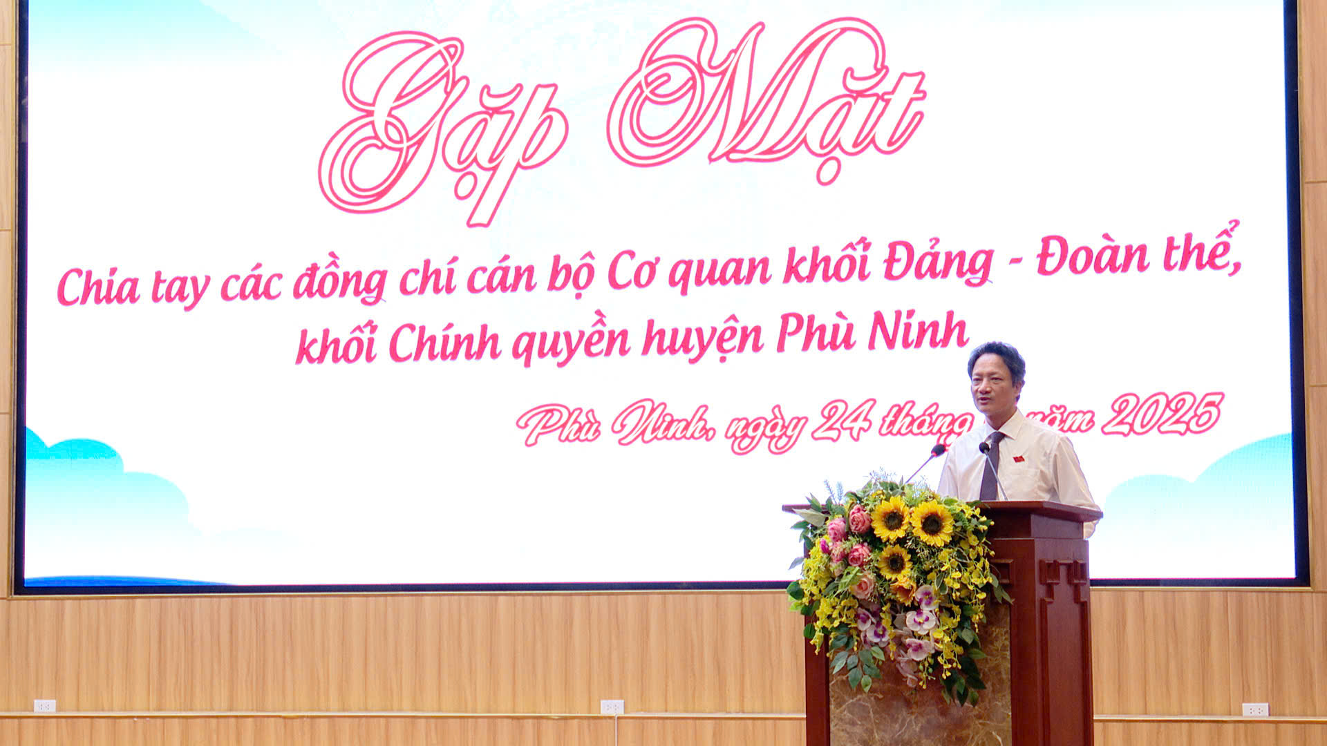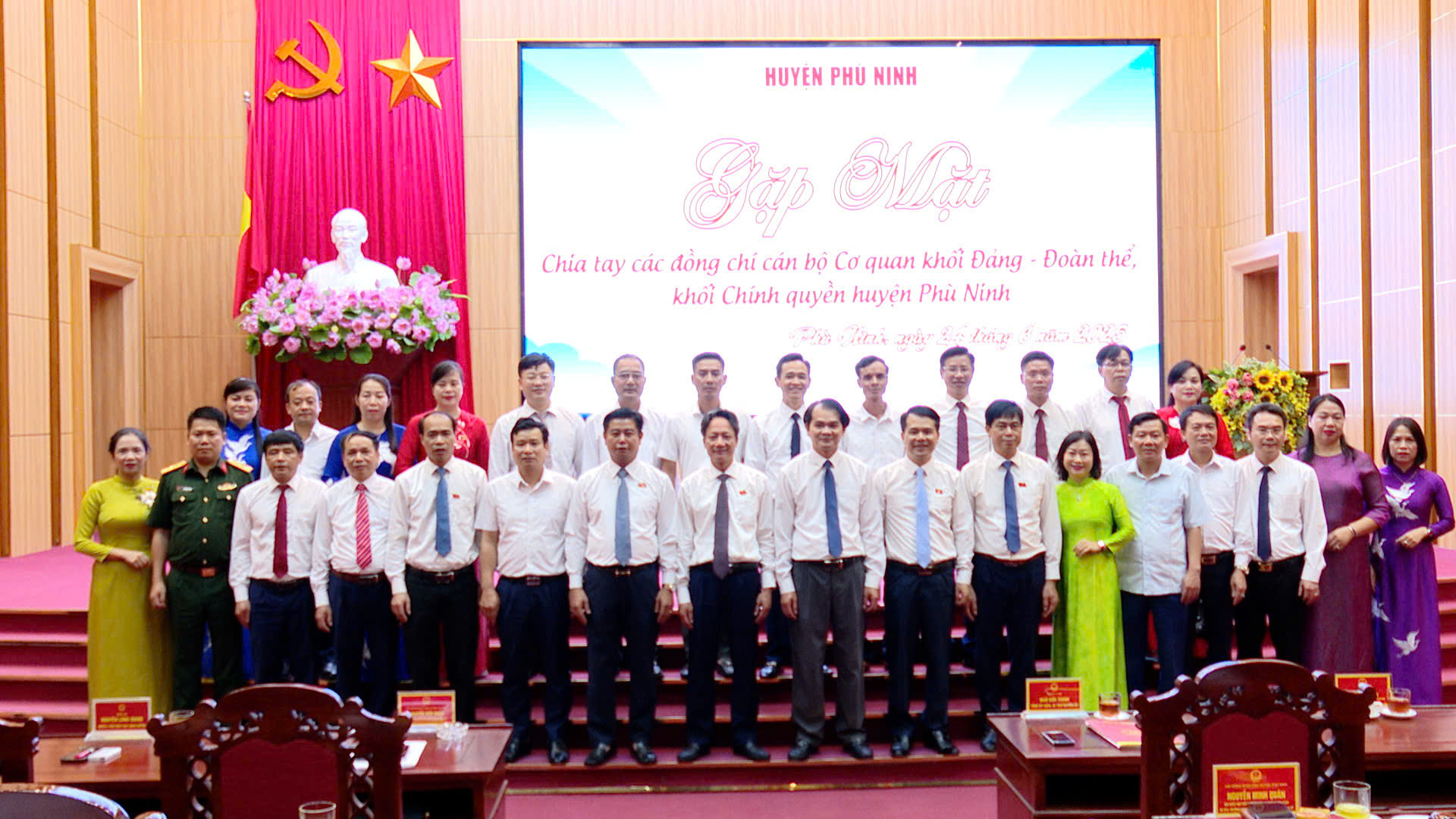 (Phù Ninh)- Chiều ngày 24/6/2025, Huyện Phù Ninh tổ chức gặp mặt chia tay các đồng chí cán bộ cơ quan khối Đảng – Đoàn thể; khối Chính quyền huyện. Dự chương trình gặp mặt có đồng chí Hà Đức Quảng – Tỉnh uỷ viên, Chủ tịch LĐLĐ tỉnh; đồng chí Nguyễn Văn Mạnh – Nguyên Tỉnh uỷ viên, Giám đốc Sở Giáo dục& Đào tạo; đồng chí Ngô Đức Thịnh – Tỉnh uỷ viên, Bí thư Huyện uỷ; đồng chí Nguyễn Hữu Nhật – Phó Bí thư Huyện uỷ, Chủ tịch UBND huyện; đồng chí Nguyễn Quang Vinh – Phó Bí thư TT Huyện uỷ; các đồng chí Ủy viên BTV Huyện ủy; các đồng chí Ủy viên UBND huyện; Trưởng các phòng, ban, cơ quan trực thuộc huyện; Thủ trưởng các cơ quan, đơn vị trên địa bàn; Hiệu trưởng các trường THPT; Trường Cao đẳng Công thương Phú Thọ; các đồng chí Bí thư Đảng ủy, Chủ tịch HĐND, Chủ tịch UBND, Phó Chủ tịch HĐND các xã, thị trấn và toàn thể cán bộ, công chức, viên chức, người lao động cơ quan khối Đảng – Đoàn thể và cơ quan khối Chính quyền huyện.