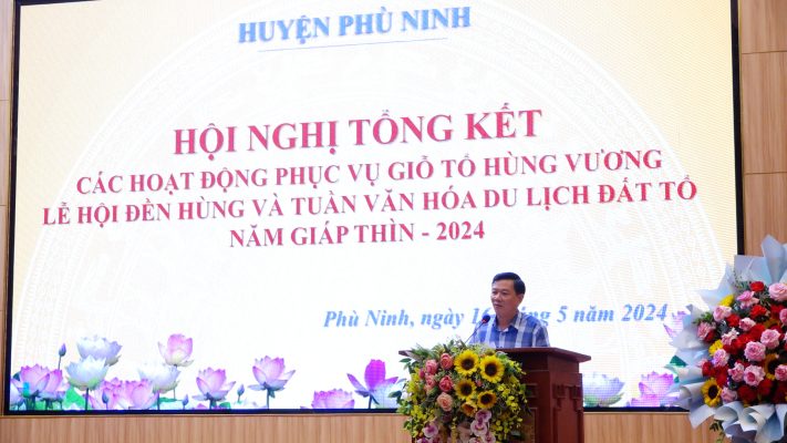 (Phù Ninh)- Chiều ngày 16/5/2024, huyện Phù Ninh tổ chức hội nghị tổng kết các hoạt động tham gia phục vụ Giỗ tổ Hùng Vương – Lễ hội Đền Hùng và Tuần Văn hóa – Du lịch Đất Tổ năm 2024. Dự Hội nghị có đồng chí Nguyễn Hữu Nhật – Phó Bí thư Huyện uỷ, Chủ tịch UBND huyện, đồng chí Trịnh Đức Lai – Ủy viên BTV Huyện ủy, Phó Chủ tịch UBND huyện, đồng chí Nguyễn Long Giang – Ủy viên BTV Huyện ủy, Phó Chủ tịch UBND huyện, các đồng chí Uỷ viên BTV Huyện uỷ, lãnh đạo đạo các phòng, ban, đơn vị thuộc huyện, lãnh đạo UBND các xã, thị trấn, đại diện các doanh nghiệp tham gia Giỗ Tổ Hùng Vương – Lễ hội Đền Hùng và Tuần văn hoá – Du lịch Đất Tổ năm 2024.