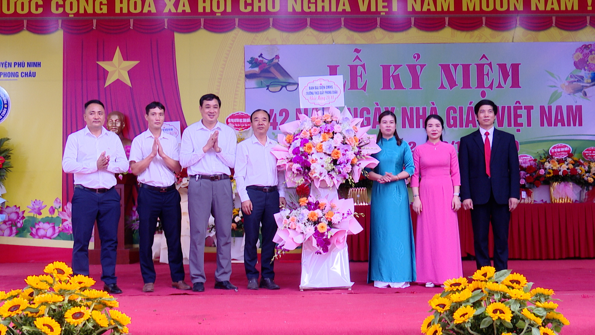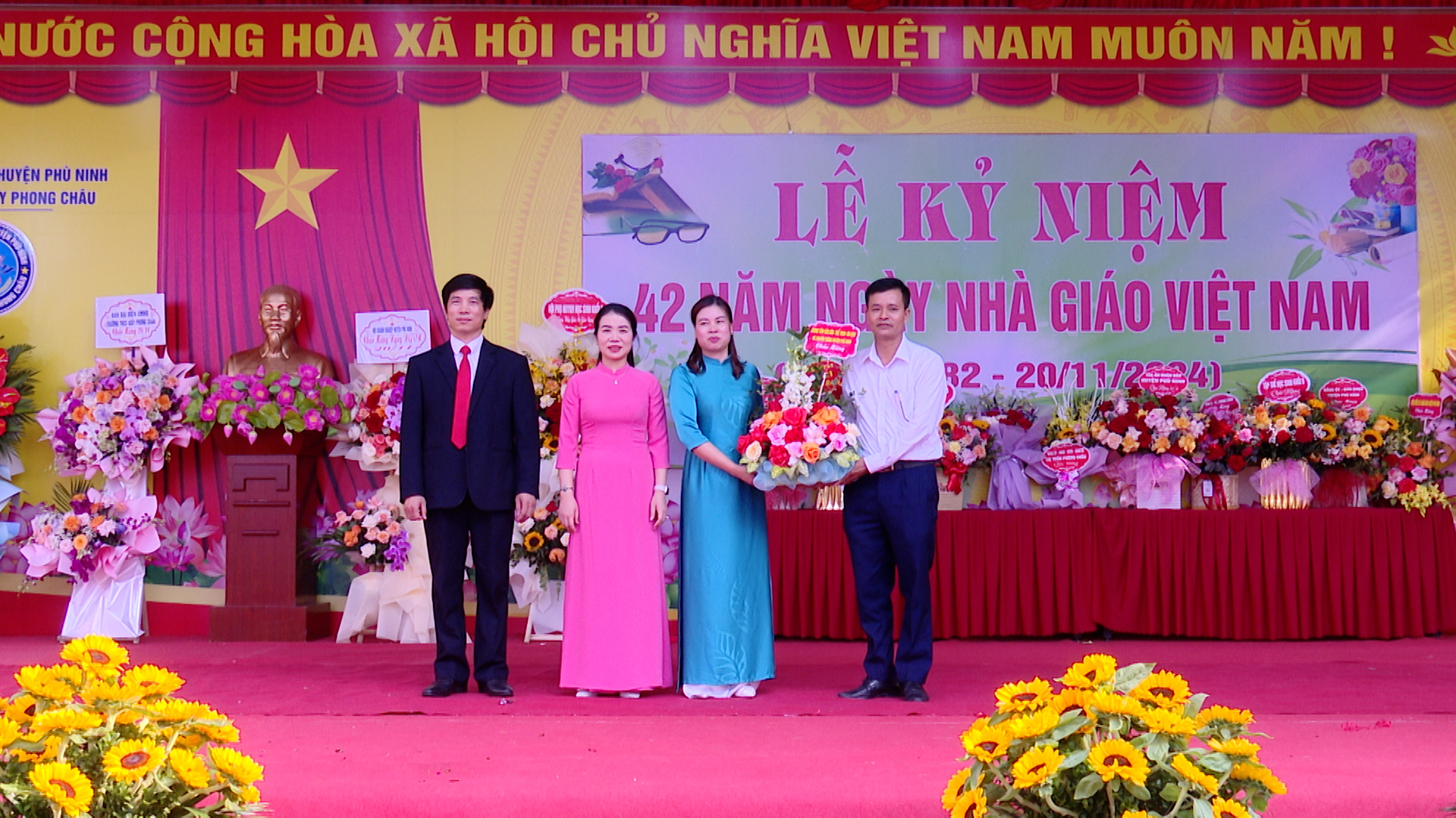 Nhân dịp này, lãnh đạo huyện Phù Ninh đã tặng hoa chúc mừng các thầy cô giáo và trao thưởng cho các tập thể và cá nhân có thành tích tiêu biểu trong công tác quản lý, giảng dạy và học tập trong các nhà trường, động viên cán bộ, giáo viên tiếp tục phát huy truyền thống, luôn đoàn kết, nỗ lực cố gắng vượt qua mọi khó khăn, hoàn thành tốt nhiệm vụ năm học 2024-2025 và những năm học tiếp theo.