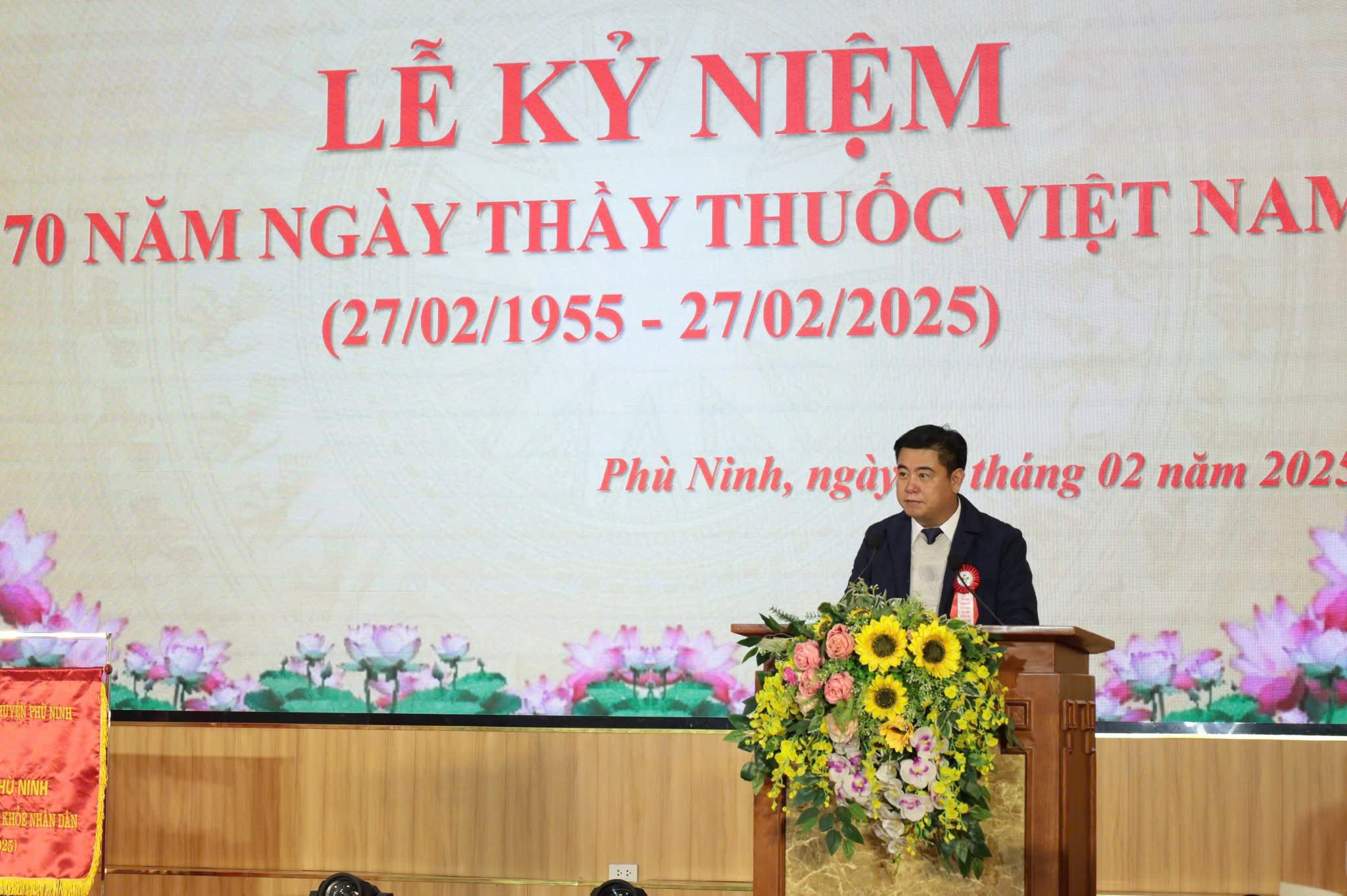 Phát biểu, tặng hoa chúc mừng các y, bác sỹ, nhân viên y tế huyện Phù Ninh, đồng chí Nguyễn Hữu Nhật – Phó Bí thư Huyện uỷ, Chủ tịch UBND huyện Phù Ninh đã gửi lời chúc mừng tốt đẹp nhân kỷ niệm 70 năm ngày truyền thống của ngành; biểu dương tinh thần trách nhiệm và kết quả phục vụ người bệnh của cán bộ lãnh đạo, đội ngũ y bác sỹ, người lao động, đồng thời mong muốn toàn thể cán bộ và nhân viên các đơn vị y tế nỗ lực, đoàn kết, tập trung chỉ đạo, cùng hướng tới mục tiêu chung là bảo vệ, chăm sóc tốt sức khỏe của người dân, góp phần quan trọng thực hiện thắng lợi các nhiệm vụ chính trị, kinh tế, xã hội của địa phương.