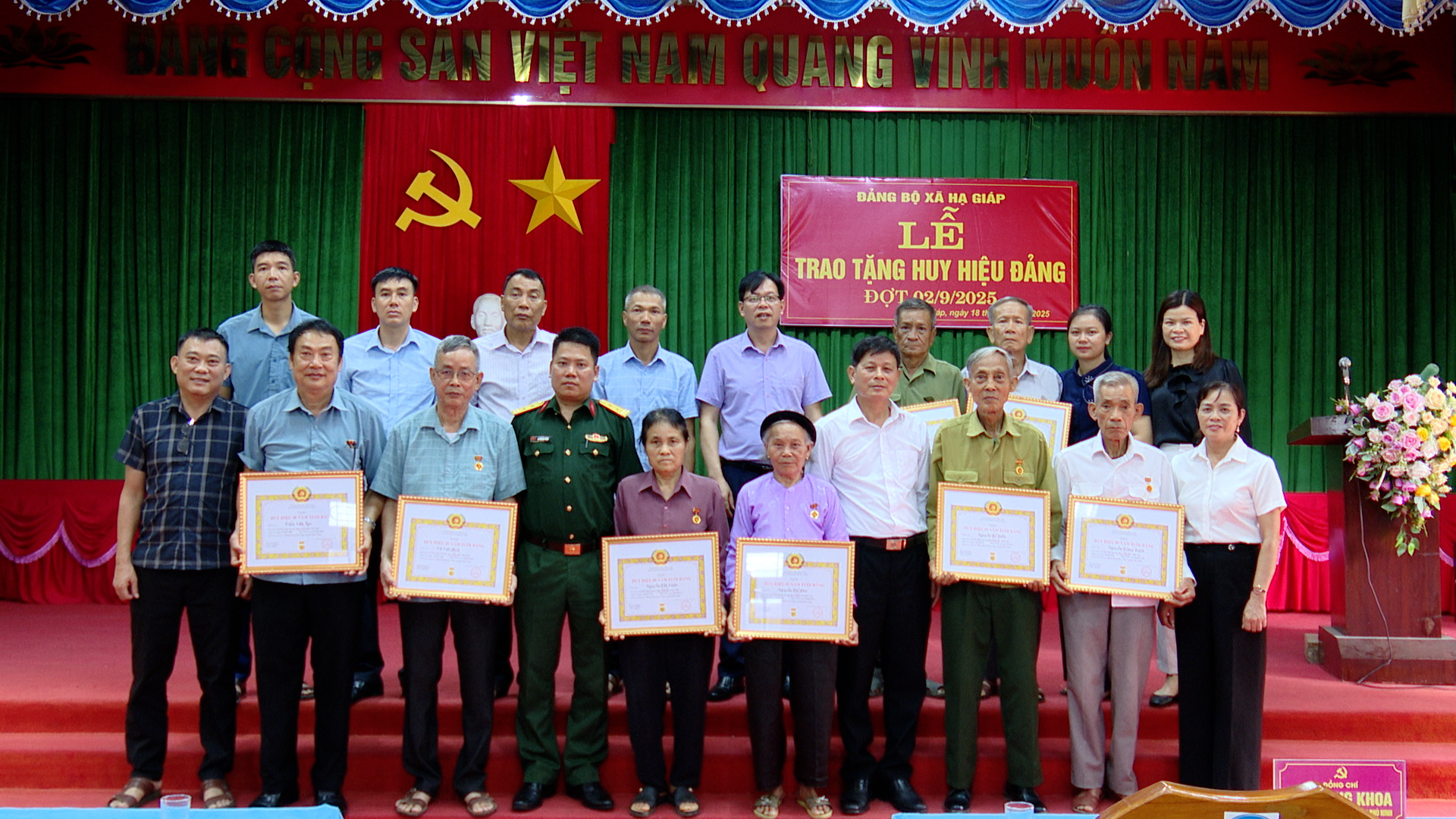 Đợt 02/9 này, Đảng bộ Xã Hạ Giáp có 01 đồng chí vinh dự nhận huy hiệu 65 năm tuổi Đảng; 01 đồngchí 55 năm tuổi Đảng; 02 đồng chí 50 tuổi Đảng; 45 năm có 02 đồng chí; 40 năm có 01 đồng chí và 30 năm có 01 đồng chí. Đảng bộ xã Trị Quận có 02 đồng chí 65 năm tuổi Đảng; 60 năm có 02 đồng chí; 01 đồng chí nhận 55 năm và 01 đồng chí nhận huy hiệu 40 năm tuổi Đảng.