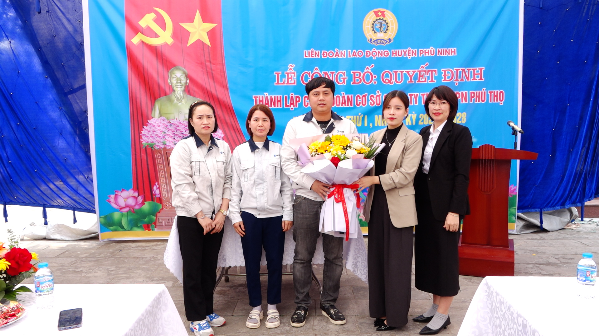 Công ty TNHH SJPN Phú Thọ có địa chỉ tại khu 14, xã Phù Ninh. Công ty được thành lập ngày 28/12/2023, bắt đầu hoạt động từ 01/01/2024 với ngành nghề gia công may bao bì. Hiện nay, công ty có tổng số 118 công nhân, người lao động, luôn đảm bảo các chế độ cho người lao động theo đúng quy định. Tại buổi lễ, Liên đoàn Lao động huyện Phù Ninh đã công bố quyết định thành lập Công đoàn cơ sở (CĐCS) và ra mắt Ban chấp hành CĐCS. Các đồng chí lãnh đạo LĐLĐ huyện Phù Ninh đã động viên, chúc mừng và tặng hoa cho Ban Chấp hành Công đoàn Công ty TNHH SJPN Phú Thọ. Đánh giá cao sự cố gắng, nỗ lực của Ban vận động thành lập Công đoàn công ty, các đồng chí cũng đề nghị Ban Chấp hành Công đoàn công ty tiếp tục phối hợp với lãnh đạo Công ty làm tốt công tác tuyên truyền, vận động đoàn viên công đoàn, người lao động thực hiện tốt các chủ trương của Đảng, chính sách pháp luật của Nhà nước, nội quy của doanh nghiệp. Đồng thời phối hợp với lãnh đạo Công ty xây dựng quy chế dân chủ tại cơ sở, thực hiện có hiệu quả vai trò bảo vệ quyền và lợi ích hợp pháp, chính đáng cho đoàn viên, người lao động; xây dựng mối quan hệ lao động hài hòa, ổn định, tiến bộ, luôn đồng hành cùng doanh nghiệp vượt qua khó khăn để hoàn thành tốt các chỉ tiêu, kế hoạch của Công ty.