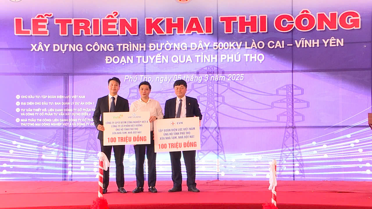 Trong chương trình, chủ đầu tư, nhà thầu thi công cùng các đại biểu đã tiến hành nghi thức triển khai thi công và trao tiền ủng hộ cho tỉnh Phú Thọ thực hiện chương trình xóa nhà tạm, nhà dột nát.