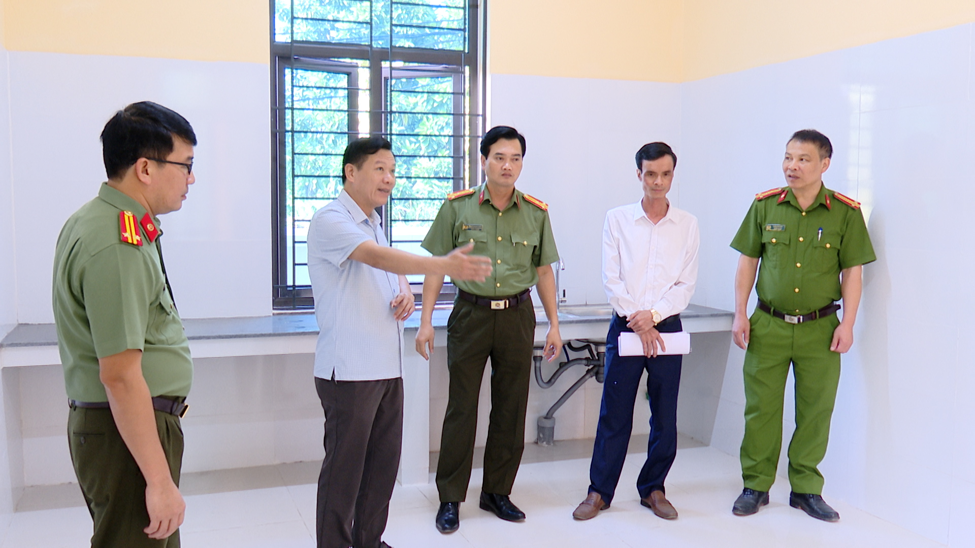 Các đồng chí lãnh đạo kiểm tra Trụ sở Công an xã Bình Phú.