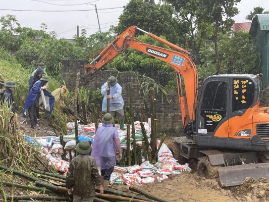 Tính đến ngày 11h00 ngày 11/9/2024, mực nước sông Lô tại trạm Thuỷ văn Vụ Quang đo được đã đạt mức 21,1m (Vượt mức báo động III là 0,6m). Mực nước sông Lô dâng lên rất nhanh đang gây ngập úng cho khoảng 1100 hộ dân sinh sống ven sông; gây sạt lở 30m tại cống Bưởi xã Phú Mỹ, 40m tại ngòi Dầu xã Lệ Mỹ và 20m tại cống Cầu Đen xã Trị Quận. Tại một số vị trí đê thuộc khu Chung Dầu xã Bình Phú, Cống Tiên Du, khu 6, khu 7 xã Hạ Giáp, cống Bưởi Khu 9 xã Phú Mỹ xuất hiện một số mạch đùn sủi, thẩm thẩm qua thân đê. Trước tình hình đó, BCH PCTT&TKCN huyện và các xã ven đê đã tập trung vận động di chuyển hơn 700 hộ dân của 30 khu dân cư ngoài đê vào nơi an toàn; huy động các lực lượng của huyện và các địa phương tập kết phương tiện và vật liệu như tre, đất, máy cuốc…tập trung xử lý dứt điểm có mạch đùn sủi, thẩm thấu qua thân đê; huy động lực lượng, vật tư đắp chống tràn 450m đê bao, 200m đê chính, chiều cao từ 0,5-1,2m để chống tràn đê tại khu vực Cống Bưởi xã Phú Mỹ; xử lý hoành triệt 03 cống qua đê (cống tiêu khu 5 – xã Tiên Du, cống khu Gai Hạ – Xã Bình Phú và cống Hốc Kết – xã Phú Mỹ. Bên cạnh đó, BCH PCTT&TKCN huyện yêu cầu các lực lượng tăng cường lực lượng ứng trực 24/24h thực hiện các phương án khi xảy ra ngập lụt, nước sông Lô tràn qua đê, vỡ đê có thể xảy ra; các xã, thị trấn vùng đất giữa tập kết vật liệu, sẵn sàng hỗ trợ tại các khu vực xung yếu của 7 xã ven đê khi có tình huống xảy ra, đảm bảo an toàn về người và tài sản trên địa bàn.