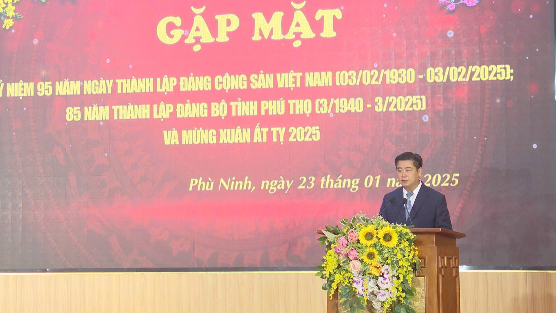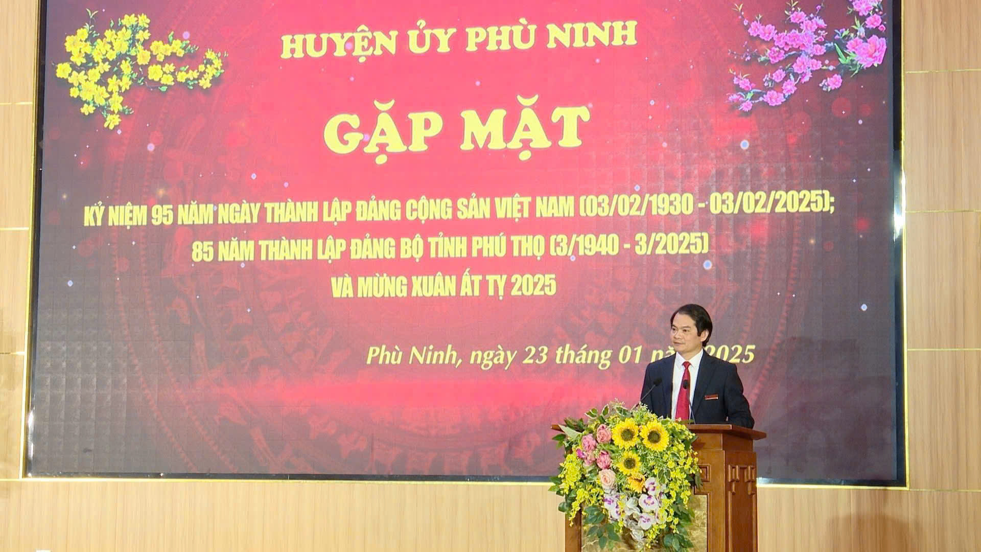(Phù Ninh)- Ngày 23/1/2025, Huyện ủy Phù Ninh long trọng tổ chức gặp mặt kỷ niệm 95 năm Ngày thành lập Đảng Cộng sản Việt Nam ( 3/2/1930 -3/2/2025; 85 thành lập Đảng bộ tỉnh Phú Thọ (tháng 3/1940 - tháng 3/2025) và mừng Xuân Ất Tỵ năm 2025. Dự buổi gặp mặt có đồng chí Nguyễn Thị Tố Uyên – Tỉnh uỷ viên, Bí thư Huyện uỷ, Chủ tịch HĐND huyện; đồng chí Nguyễn Hữu Nhật – Phó Bí thư Huyện uỷ, Chủ tịch UBND huyện; đồng chí Nguyễn Quang Vinh – Phó Bí thư TT Huyện uỷ; các đồng chí Uỷ viên Ban Thường vụ Huyện uỷ; Uỷ viên Ban Chấp hành Đảng bộ huyện; Uỷ viên Uỷ ban Kiểm tra Huyện uỷ; các đồng chí lãnh đạo các phòng, ban, ngành chuyên môn, đơn vị sự nghiệp thuộc UBND huyện, các đồng chí Phó trưởng Ban HĐND huyện; các đồng chí lãnh đạo và cán bộ các Ban xây dựng Đảng, Văn phòng Huyện uỷ, Uỷ ban MTTQ, các tổ chức đoàn thể chính trị xã hội, Trung tâm Chính trị huyện; Thủ trưởng các đơn vị: Chi cục Thuế Lâm Thao – Phù Ninh, Chi cục Thống kê khu vực Lâm Thao – Phù Ninh, Đội Quản lý thị trường số 2, Trạm chăn nuôi Thú y, Trạm Bảo vệ thực vật huyện; các đồng chí Bí thư Đảng bộ, Chủ tịch UBND các xã, thị trấn, đồng chí được giao phụ trách Đảng bộ xã; đồng chí Bí thư các chi, đảng bộ khối cơ quan trực thuộc huyện.