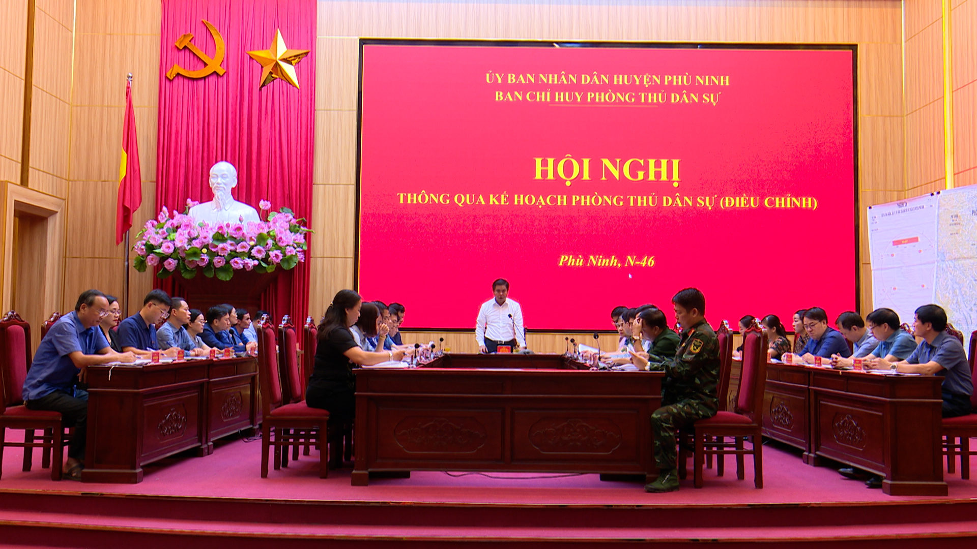 (Phù Ninh)- Để chuẩn bị cho cuộc diễn tập khu vực phòng thủ huyện vào tháng 10/2024. Ngày 17/9/2024, Ban Chỉ đạo diễn tập khu vực phòng thủ huyện Phù Ninh đã tổ chức luyện tập cho các đồng chí trong Ban chỉ đạo Diễn tập khu vực phòng thủ huyện năm 2024. Tới dự có Đại tá Nguyễn Trọng Liễu - Chủ nhiệm Chính trị, Bộ CHQS tỉnh Phú Thọ; Thượng tá Nông Quốc Tuấn - Phó Tham mưu trưởng, Bộ CHQS tỉnh; Thượng tá Phạm Trung Du - Trưởng ban Tác huấn, Bộ CHQS tỉnh; Thượng tá Lý Mạnh Tưởng - Trưởng ban Tổ chức, Bộ CHQS tỉnh Phú Thọ. Về phía huyện Phù Ninh có đồng chí Nguyễn Thị Tố Uyên - Tỉnh ủy viên, Bí thư Huyện ủy, Chủ tịch HĐND huyện; đồng chí Nguyễn Hữu Nhật- Phó bí thư, Chủ tịch UBND huyện; đồng chí Nguyễn Quang Vinh - Phó Bí thư Thường trực Huyện ủy; các đồng chí Ủy viên BTV Huyện ủy, các đồng chí thành viên Ban Tổ chức thực hiện nhiệm vụ diễn tập huyện, lãnh đạo các cơ quan, đơn vị và các tổ chức chính trị - xã hội huyện; lực lượng vũ trang huyện.